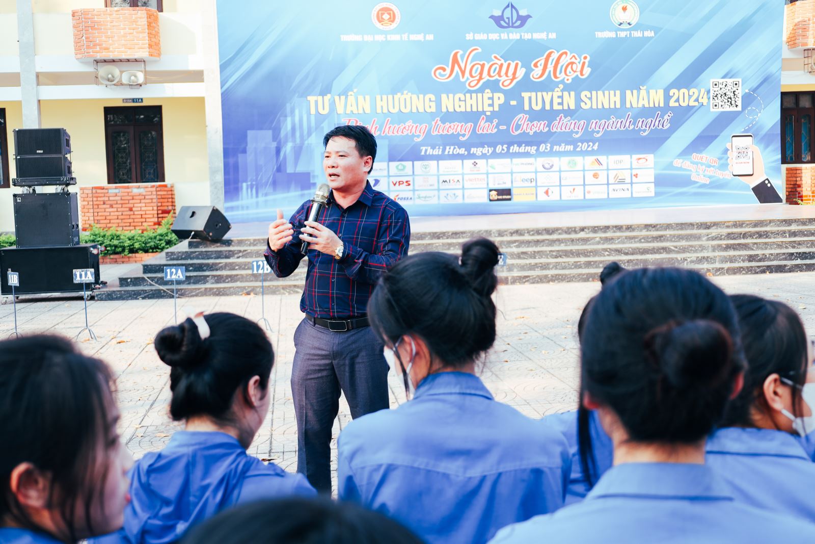Chiều ngày 5/3 vừa qua, Trường Đại học Kinh tế Nghệ An đã tổ chức Ngày hội Tư vấn hướng nghiệp - Tuyển sinh năm 2024 "Định hướng tương lai - Chọn đúng ngành nghề" tại THPT Thái Hoà, tỉnh Nghệ An.