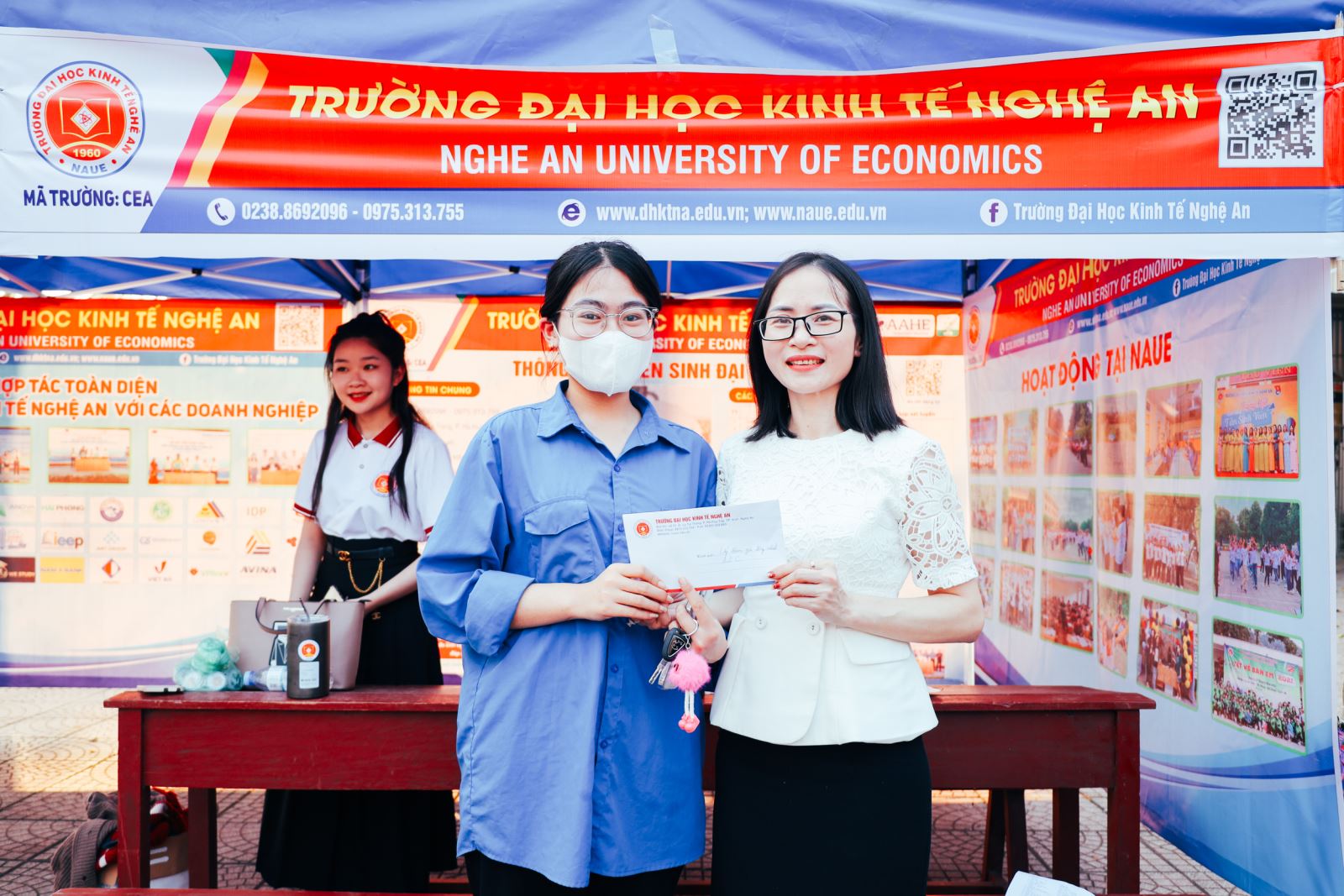 Ngoài ra, khi đến với các chương trình Ngày hội Tư vấn hướng nghiệp - Tuyển sinh của Trường Đại học Kinh tế Nghệ An, các bạn không chỉ nhận được sự hướng dẫn tận tình, những lời khuyên chân thành, … từ các Thầy/Cô, Đội ngũ Tư vấn tuyển sinh NAUE mà còn nhận được nhiều phần quà hấp dẫn như gấu bông, bình nước, dây đeo, lịch, … mang thương hiệu của Trường Đại học Kinh tế Nghệ An.