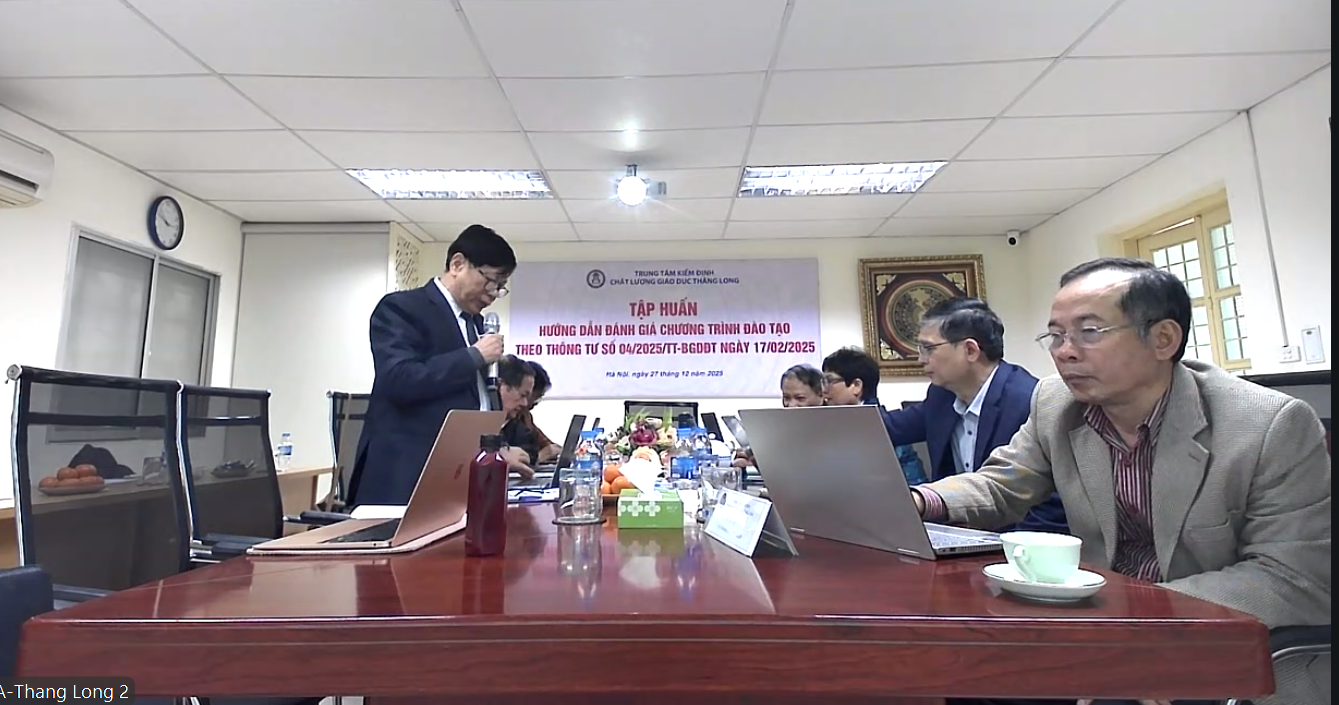 Tiếp đến, TS. Nguyễn Văn Đường – Giám đốc Trung tâm Kiểm định chất lượng giáo dục Thăng Long đã giới thiệu khái quát Tài liệu hướng dẫn đánh giá theo bộ tiêu chuẩn kiểm định chất lượng chương trình đào tạo các trình độ của giáo dục đại học ban hành kèm theo Thông tư số 04/2025/TT-BGDĐT.