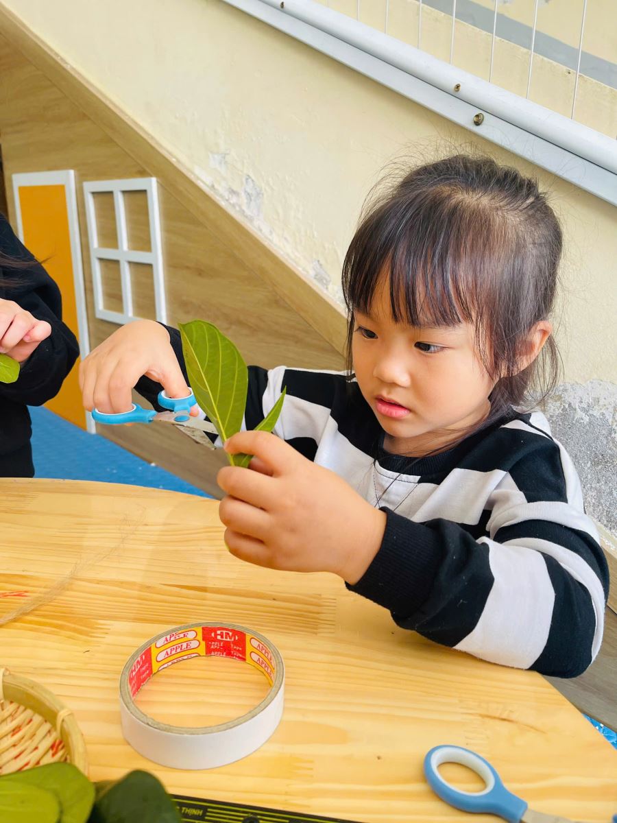 Hoạt động trải nghiệm với lá là minh chứng sinh động cho triết lý giáo dục của nhà trường: