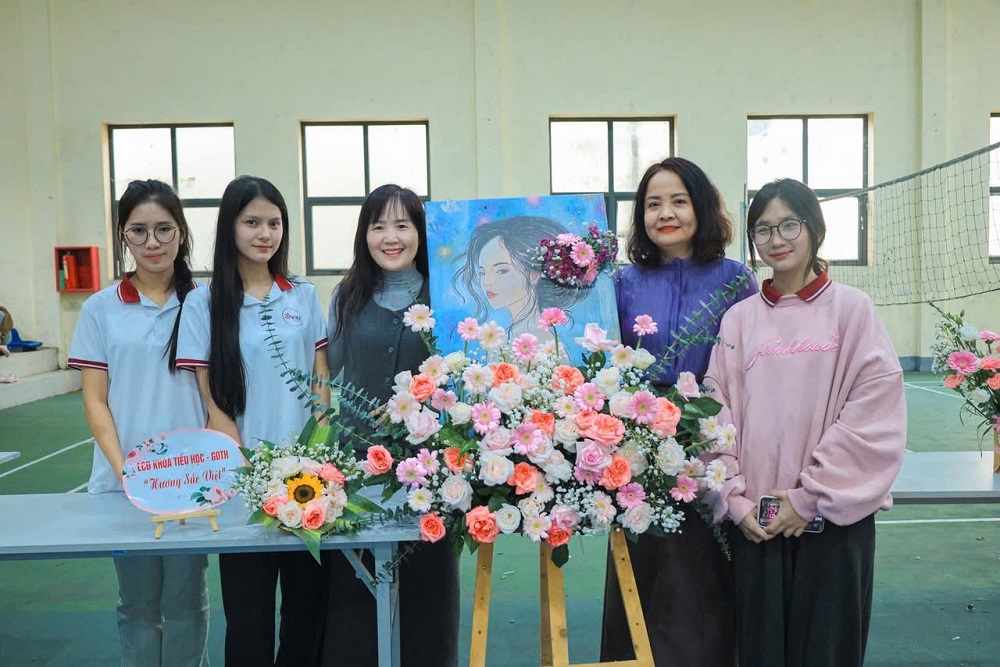 Trong hội thi, Chi đoàn K12 Giáo dục Tiểu học – Khoa Tiểu học đã xuất sắc đạt Giải Ba với tác phẩm “Hương Sắc Việt”. Tác phẩm gây ấn tượng bởi bố cục hài hòa, sự kết hợp tinh tế của nhiều loài hoa mang sắc màu truyền thống, thể hiện vẻ đẹp dịu dàng, đằm thắm của người phụ nữ Việt Nam. Qua đó, nhóm tác giả gửi gắm thông điệp trân trọng và tri ân những người phụ nữ – những người luôn âm thầm cống hiến và lan tỏa yêu thương trong cuộc sống.