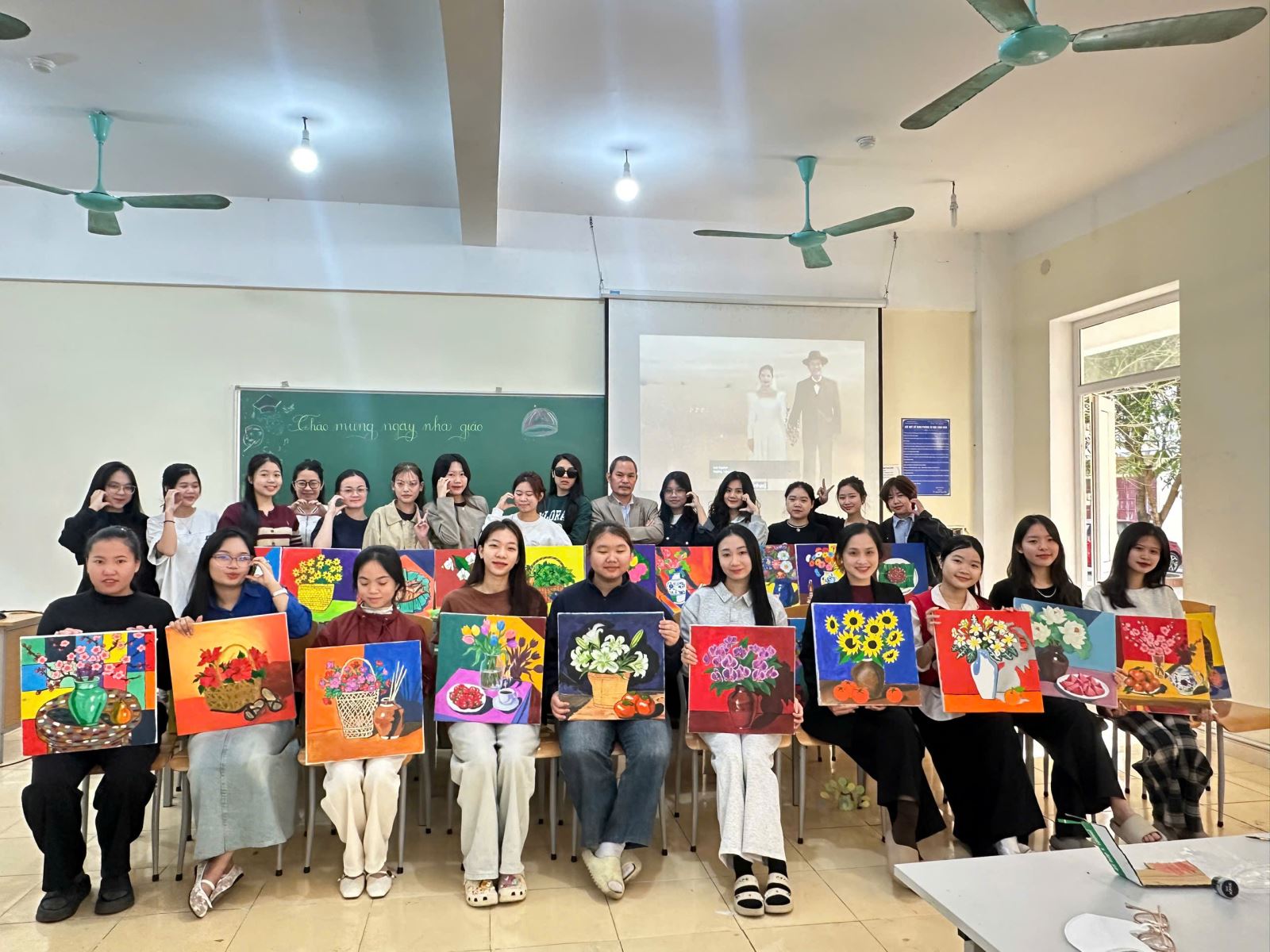 Hành trình sáng tạo của sinh viên Cao đẳng Mầm non qua giờ học Mỹ thuật. 06/03/2026 02:29 177 lượt xem Bên cạnh những nhịp múa uyển chuyển và tiếng đàn ngân vang, không gian nghệ thuật của Khoa Mầm non – Trường Đại học Nghệ An còn được tô điểm bởi những mảng màu rực rỡ từ giờ học Mỹ thuật. Đây là nơi các bạn sinh viên học cách “vẽ” nên thế giới muôn màu cho trẻ thơ. Từ những nét phác thảo cơ bản đến tư duy hội họa vững chắc Hành trình chinh phục cái đẹp của sinh viên bắt đầu từ những bài học hình họa cơ bản. Qua những nét chì đánh bóng, dựng hình khối tĩnh vật tỉ mỉ, các em dần rèn luyện được sự kiên nhẫn và khả năng quan sát tinh tế. Chính từ những bài học nền tảng này, tư duy về bố cục và ánh sáng được hình thành, làm tiền đề cho những sáng tạo đột phá hơn. Sắc màu rực rỡ và thế giới tạo hình đa dạng Bước vào thế giới của màu sắc, phòng học Mỹ thuật như biến thành một triển lãm nhỏ với đủ loại hình nghệ thuật: Hội họa màu nước và Acrylic: Những bức tranh tĩnh vật, hoa cỏ với sắc màu tươi sáng không chỉ thể hiện kỹ thuật pha màu điêu luyện mà còn bộc lộ tâm hồn yêu đời, yêu nghề của sinh viên. Nghệ thuật tạo hình và Thủ công: Không chỉ vẽ trên giấy, sinh viên còn được học cách tạo hình nhân vật, làm mặt nạ hóa trang sinh động và các vật dụng trang trí từ nhiều chất liệu khác nhau. Đây là những kỹ năng thiết yếu để các em tự tay thiết kế môi trường lớp học mầm non đầy lôi cuốn sau này. Hành trang cho người giáo viên mầm non đa năng Môn Mỹ thuật không chỉ dạy sinh viên cách vẽ một bức tranh đẹp, mà quan trọng hơn là dạy các em cách: Khơi gợi sự sáng tạo ở trẻ: Biết cách hướng dẫn trẻ khám phá màu sắc và hình khối. Xây dựng môi trường giáo dục trực quan: Tự tay trang trí lớp học theo các chủ đề, tạo không gian học tập hạnh phúc cho trẻ. Phát triển thẩm mỹ: Hình thành tư duy thẩm mỹ tốt để truyền cảm hứng về cái đẹp cho thế hệ tương lai. Nhìn những tác phẩm chỉn chu được trưng bày, chúng ta có thể thấy được sự đầu tư nghiêm túc của Khoa trong việc đào tạo đội ngũ giáo viên không chỉ giỏi chuyên môn mà còn thăng hoa trong nghệ thuật. Những “người gieo hạt” tại Đại học Nghệ An đang từng ngày tô điểm cho hành trình nghề nghiệp của mình bằng những sắc màu tươi sáng nhất. Hashtags: #KhoaMamNon #DaihocNgheAn #SangTaoMauSac#NgheThuatMamNon 📍 KHOA MẦM NON – TRƯỜNG ĐẠI HỌC NGHỆ AN “Nơi tình yêu bắt đầu, nơi tài năng tỏa sáng” 🏢 Địa chỉ: Cơ sở 4: Số 32 Hồ Sỹ Dương, Phường Thành Vinh, Nghệ An. 📍 Trụ sở chính Số 51 Lý Tự Trọng, khối 12, phường Vinh Phú, tỉnh Nghệ An 🌐 Website: nau.edu.vn 🔵 Facebook: Khoa Mầm Non NAU 🎵 TikTok: @mnnau