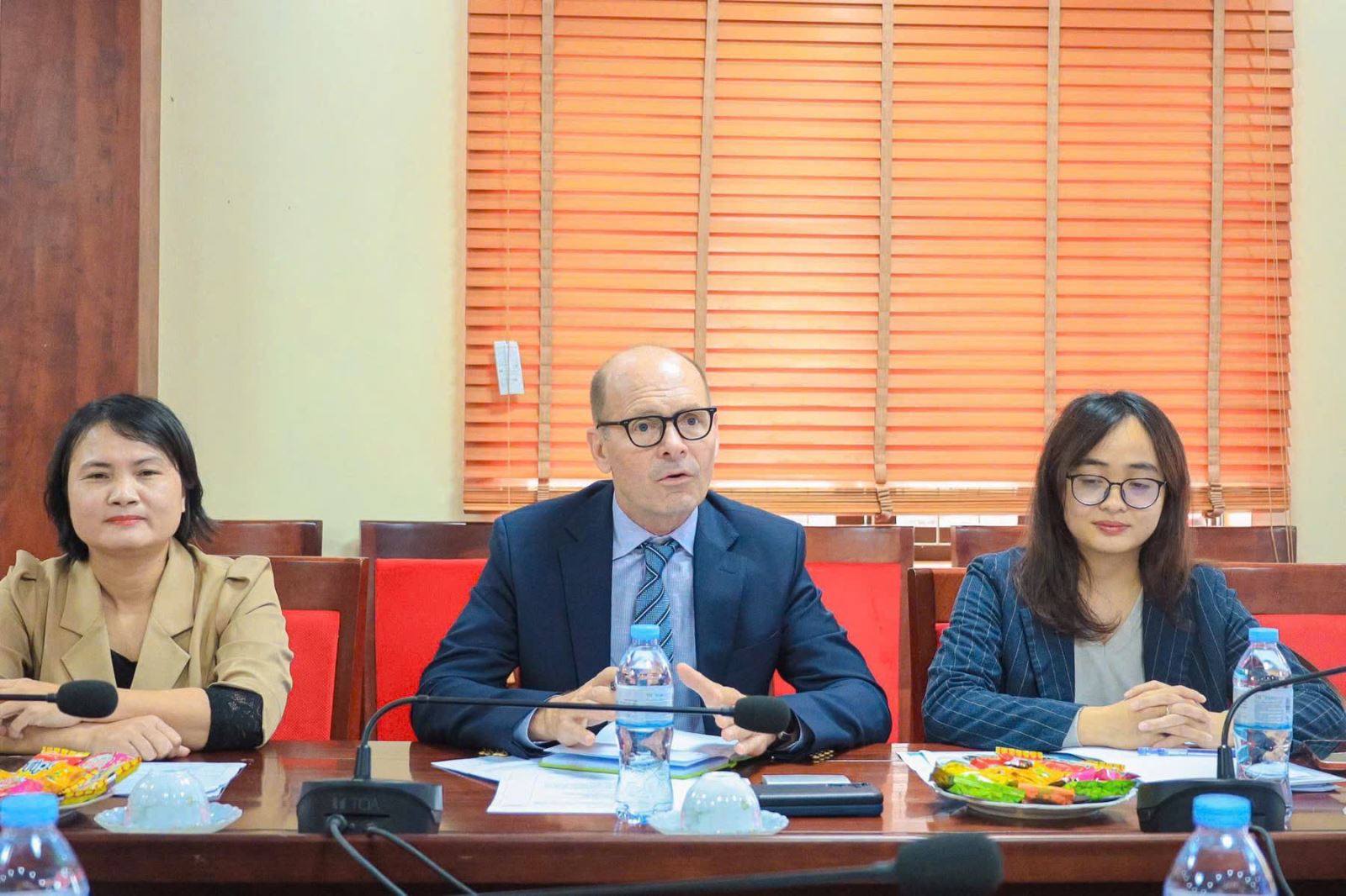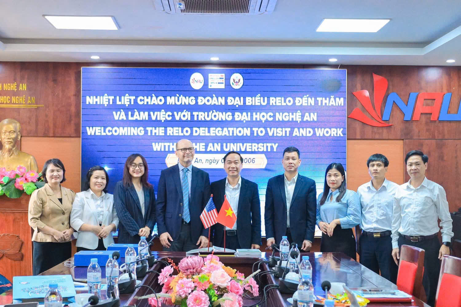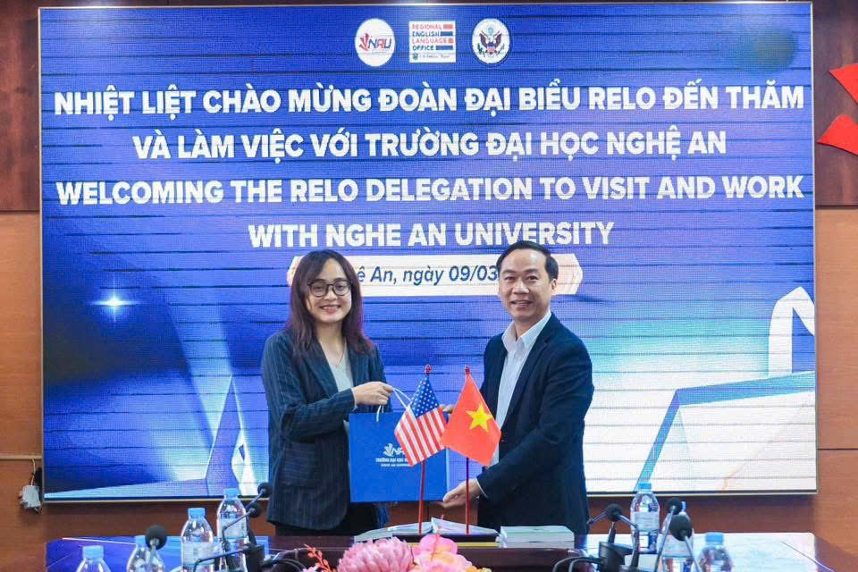 Ngày 09 tháng 3 năm 2026 tại Trường Đại học Nghệ An đã diễn ra buổi làm việc giữa lãnh đạo Nhà trường và ông David George Fay – Giám đốc khu vực, Văn phòng tiếng Anh khu vực (Regional English Language Office - Relo)  Đại sứ quán Hoa Kỳ tại Việt Nam nhằm trao đổi về các cơ hội hợp tác trong lĩnh vực đào tạo, nâng cao năng lực tiếng Anh và phát triển các chương trình học thuật quốc tế.
