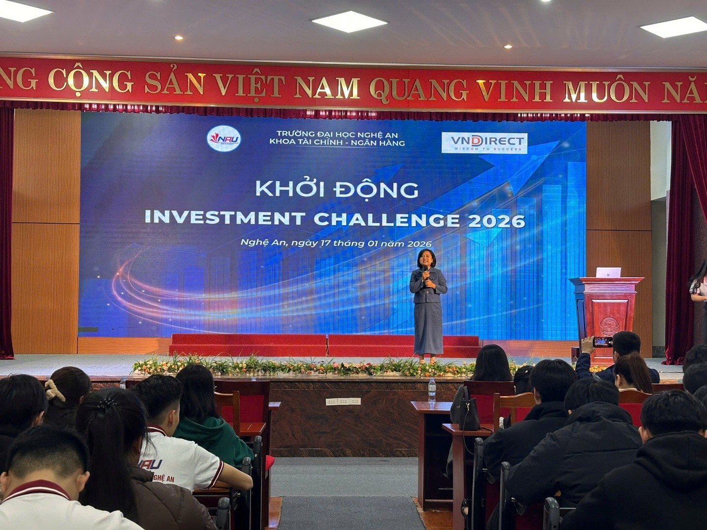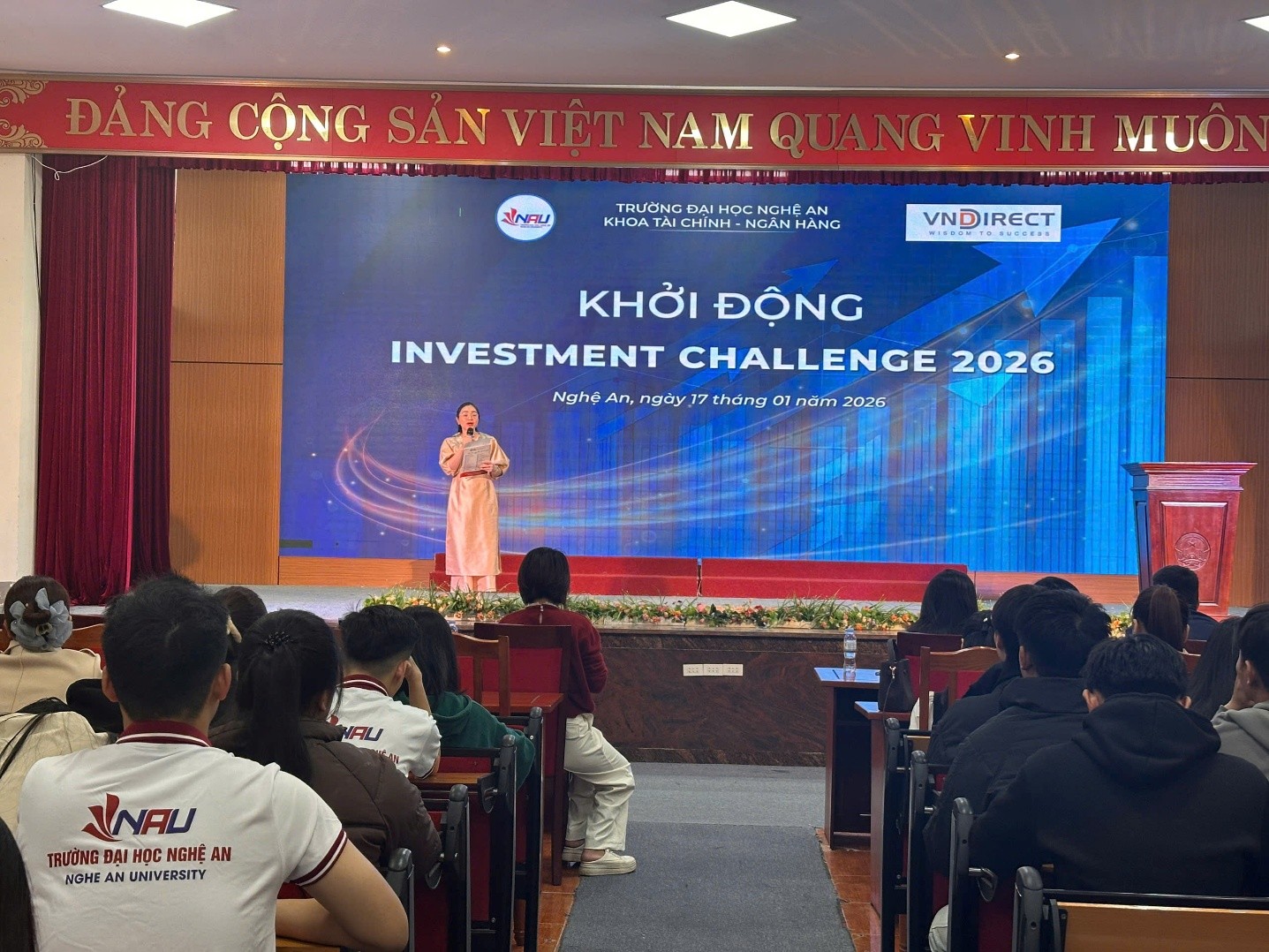 Vào ngày 17 tháng 01 năm 2026, Trường Đại học Nghệ An (NAU) đã chính thức khởi động chương trình Investment Challenge 2026, một sự kiện đặc biệt dành cho các sinh viên và những ai yêu thích lĩnh vực tài chính. Đây là một cuộc thi đầu tư tài chính được tổ chức bởi Khoa Tài chính - Ngân hàng của trường, với sự đồng hành của công ty chứng khoán VNDIRECT, một trong những công ty chứng khoán hàng đầu tại Việt Nam. Chương trình không chỉ là sân chơi học thuật mà còn là cơ hội để các bạn sinh viên thể hiện khả năng phân tích, đầu tư và xây dựng các chiến lược tài chính hiệu quả.