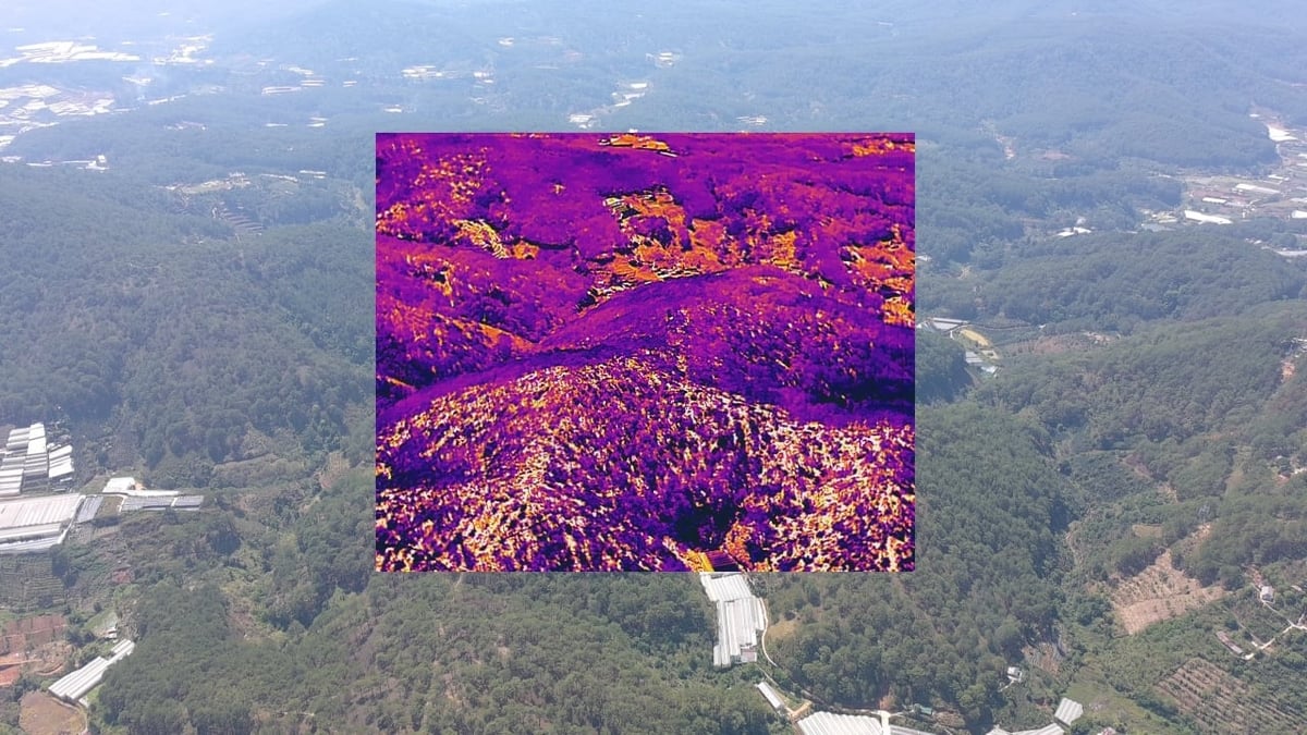 Ảnh kiểm tra công tác quản lý bảo vệ rừng và phòng chống cháy rừng bằng thiết bị bay không người lái có trang bị camera tầm nhiệt để phát hiện đám cháy nếu có.