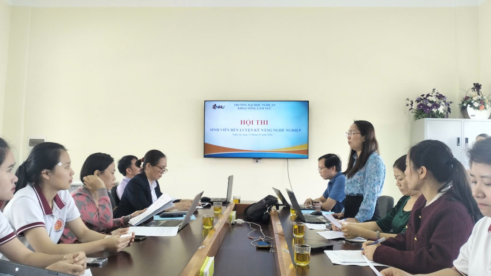 Trong không khí thi đua sôi nổi của sinh viên toàn khoa, chiều ngày 19/01/2025 Khoa Nông Lâm Ngư – Trường Đại học Nghệ An đã tổ chức Hội thi sinh viên rèn luyện kỹ năng nghề nghiệp, thu hút sự tham gia của các ngành đào tạo chủ lực gồm Thú y, Quản lý đất đai và Nông nghiệp công nghệ cao. Hội thi là hoạt động chuyên môn ý nghĩa nhằm đánh giá kết quả rèn luyện kỹ năng nghề nghiệp, đồng thời tạo sân chơi học thuật để sinh viên thể hiện năng lực thực hành, tư duy chuyên môn và khả năng vận dụng kiến thức vào thực tiễn.