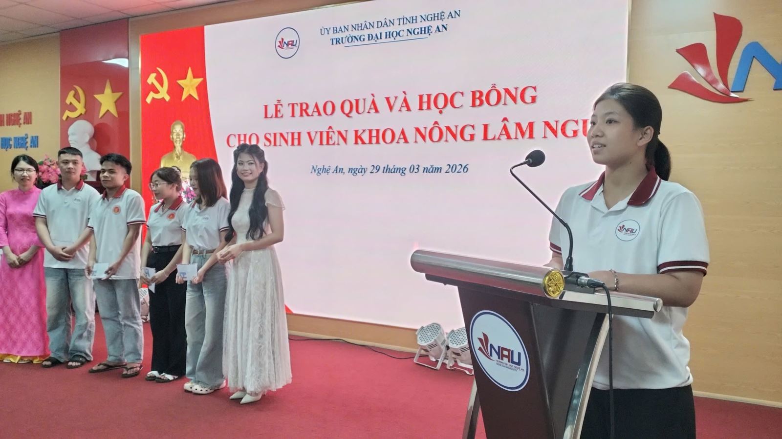 Chiều ngày 29/03/2026, trong không khí ấm áp và đầy xúc động, sinh viên Khóa 8 – ngành Thú y, Khoa Nông Lâm Ngư, Trường Đại học Nghệ An đã tổ chức buổi gặp mặt tri ân và trao tặng những món quà ý nghĩa trước khi chính thức tốt nghiệp.