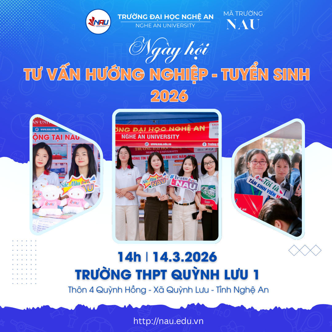 Trong chương trình tư vấn ngày 14/3/2026, đoàn tư vấn tuyển sinh của NAU sẽ đến gặp gỡ và giao lưu trực tiếp với học sinh tại hai trường THPT trên địa bàn tỉnh Nghệ An: