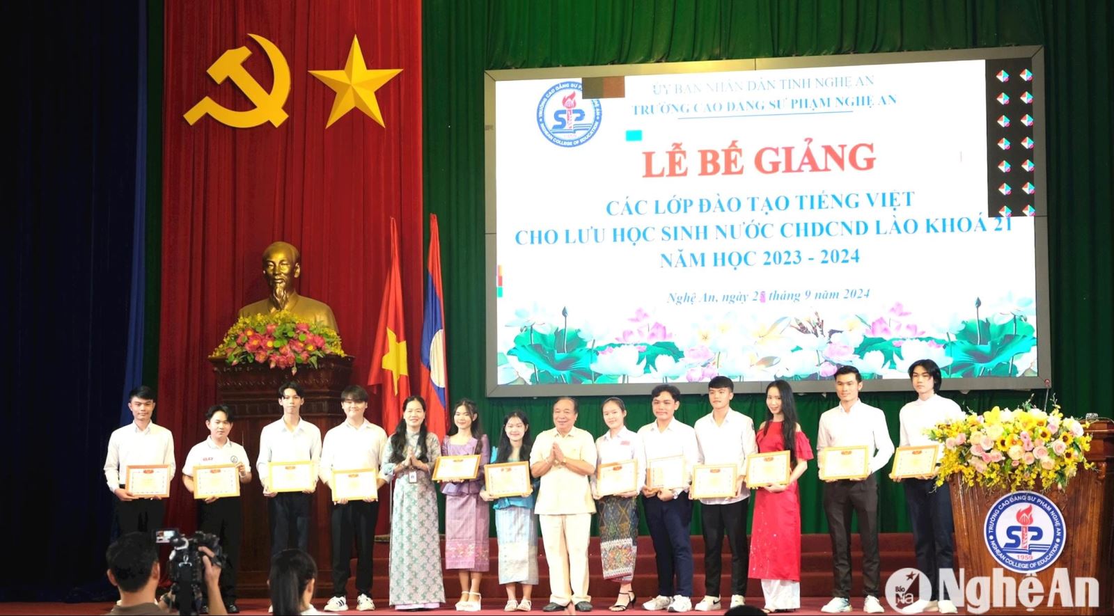 Sáng 25/9, Trường Cao đẳng Sư phạm Nghệ An tổ chức Lễ bế giảng các lớp đào tạo tiếng Việt cho lưu học sinh nước Cộng hoà Dân chủ nhân dân Lào khoá 21 năm học 2023 – 2024