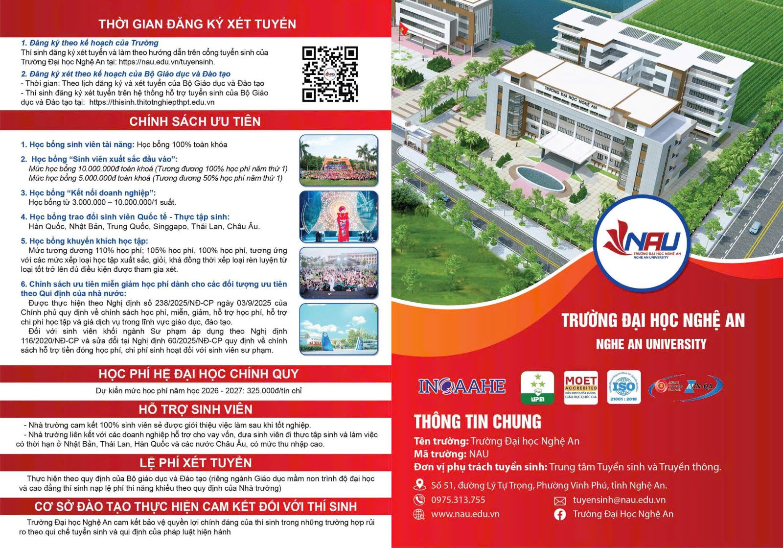 Vừa tạo cơ hội học tập cho Gen Z với đa dạng phương thức xét tuyển và cơ cấu ngành nghề, vừa đảm bảo sự an tâm cho phụ huynh với chính sách học bổng hấp dẫn và mức học phí phù hợp. Hãy tự tin chọn NAU là trường đại học tương lai của mình, bạn nhé!