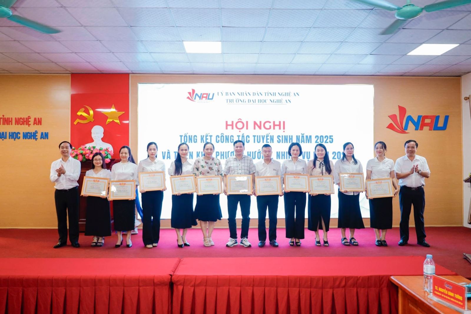Cũng tại Hội nghị, Trường Đại học Nghệ An đã trao Giấy khen cho 03 tập thể và 46 cá nhân có thành tích xuất sắc trong công tác tuyển sinh năm 2025.