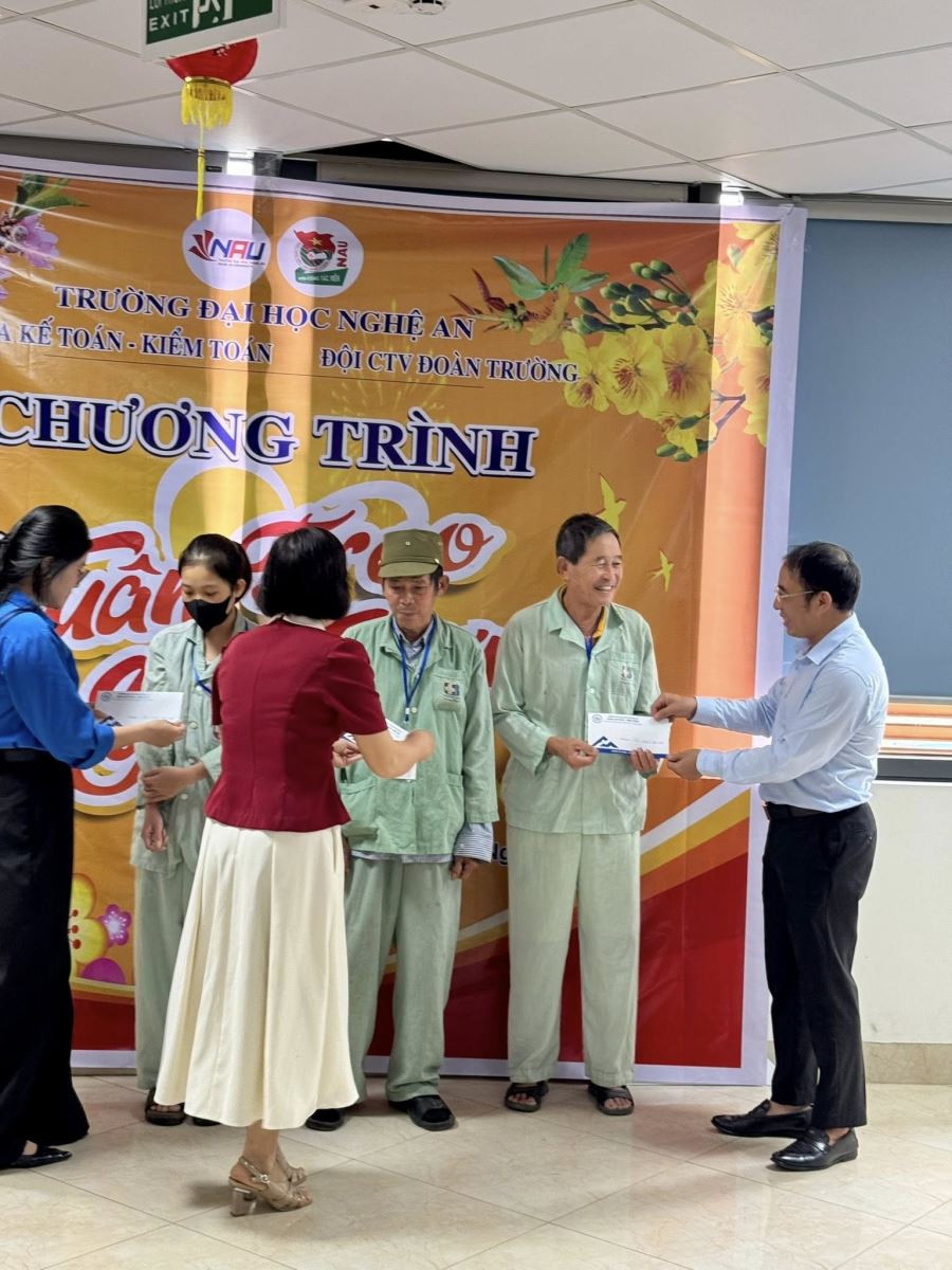 Với mong muốn sẻ chia và lan tỏa tinh thần nhân ái trong cộng đồng, ngày 06/02/2026, Công đoàn và Liên chi Đoàn Khoa Kế toán – Kiểm toán đã phối hợp cùng Đội Cộng tác viên Đoàn Trường, Trường Đại học Nghệ An tổ chức chương trình thiện nguyện “Xuân Trao Yêu Thương”.