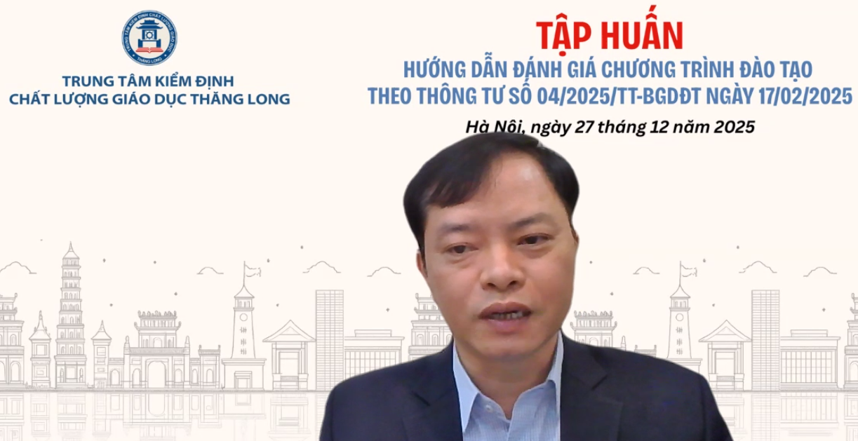 Nhằm triển khai hiệu quả Thông tư số 04/2025/TT-BGDĐT ngày 17/02/2025 của Bộ trưởng Bộ Giáo dục và Đào tạo, sáng ngày 27/12/2025, Trường Đại học Nghệ An đã tham gia Hội nghị tập huấn hướng dẫn công tác đánh giá chương trình đào tạo theo bộ tiêu chuẩn kiểm định chất lượng mới. Chương trình do Trung tâm Kiểm định chất lượng giáo dục Thăng Long chủ trì và được tổ chức theo hình thức trực tuyến.