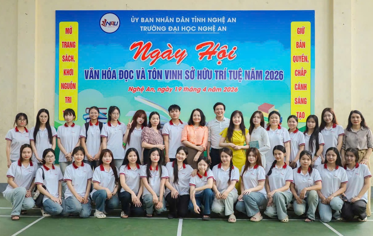 Sáng ngày 19/4/2026, Trường Đại học Nghệ An đã long trọng tổ chức Ngày hội Văn hóa đọc và Tôn vinh Sở hữu trí tuệ năm 2026. Sự kiện diễn ra nhằm thiết thực hưởng ứng Ngày Sách và Văn hóa đọc Việt Nam (21/4) cùng Ngày Sở hữu trí tuệ thế giới (26/4). Đây không chỉ là không gian tôn vinh văn hóa đọc mà còn khẳng định giá trị của chất xám và quyền bảo hộ các ý tưởng sáng tạo trong bối cảnh đổi mới giáo dục. Chương trình vinh dự đón tiếp các vị đại biểu: Ông Phạm Ngọc Anh – Giám đốc Thư viện tỉnh Nghệ An, Ông Nguyễn Nhật Minh – Giám đốc thị trường EBSCO Việt Nam, Ông Nguyễn Mạnh Hà – Trưởng phòng Quản lý Chuyên môn, Sở Khoa học & Công nghệ.