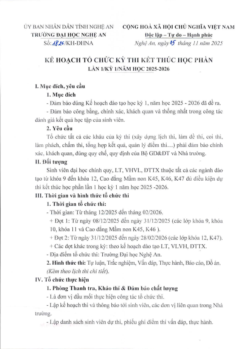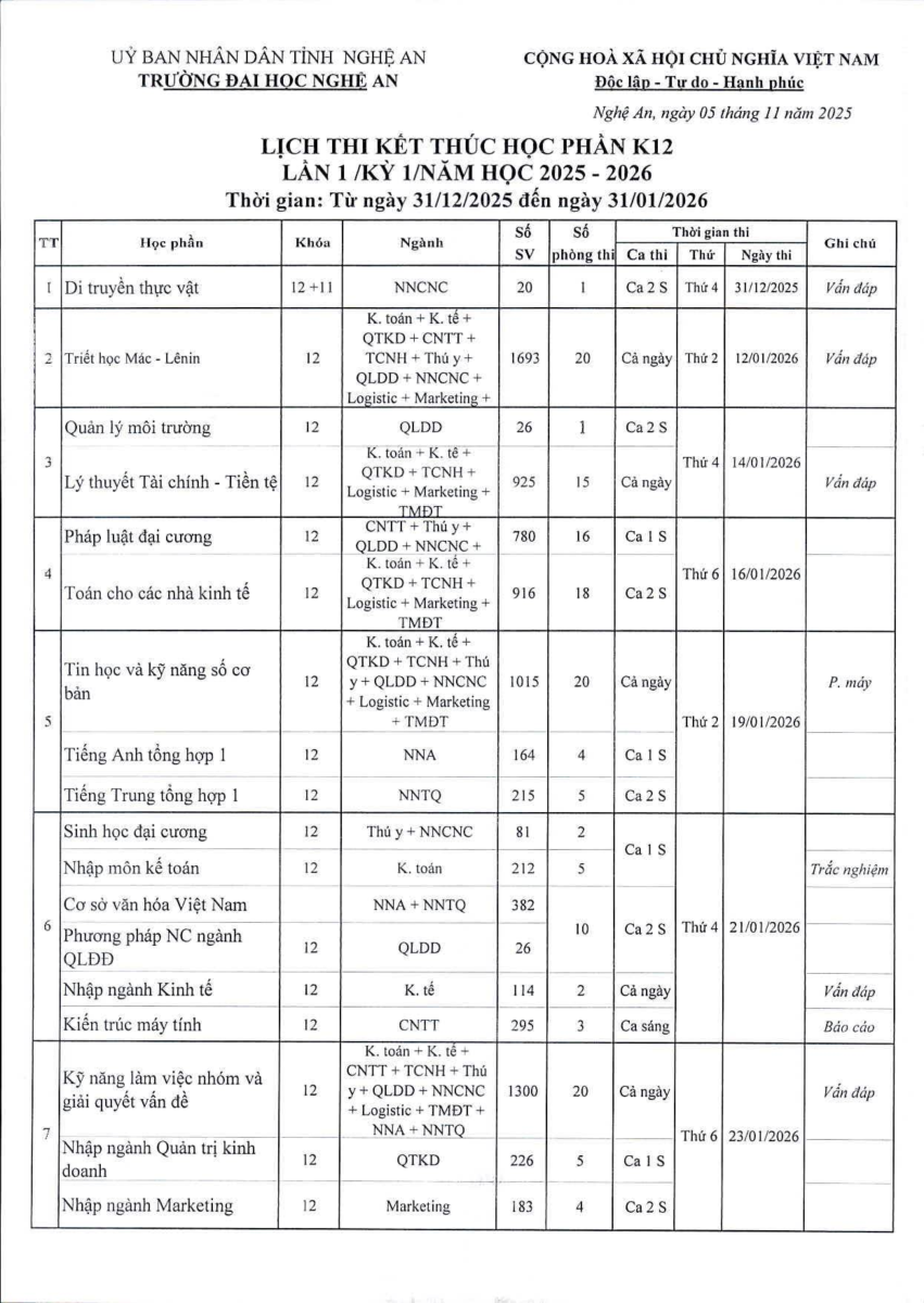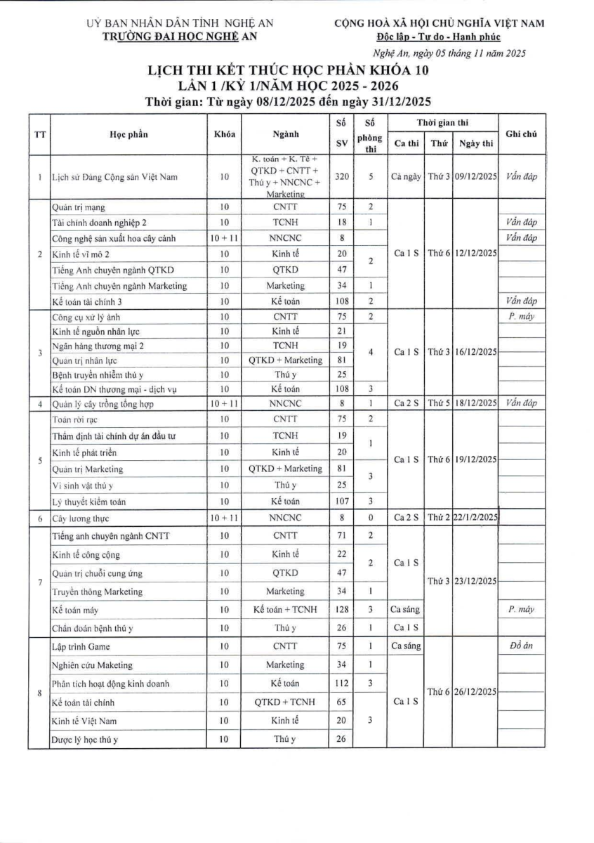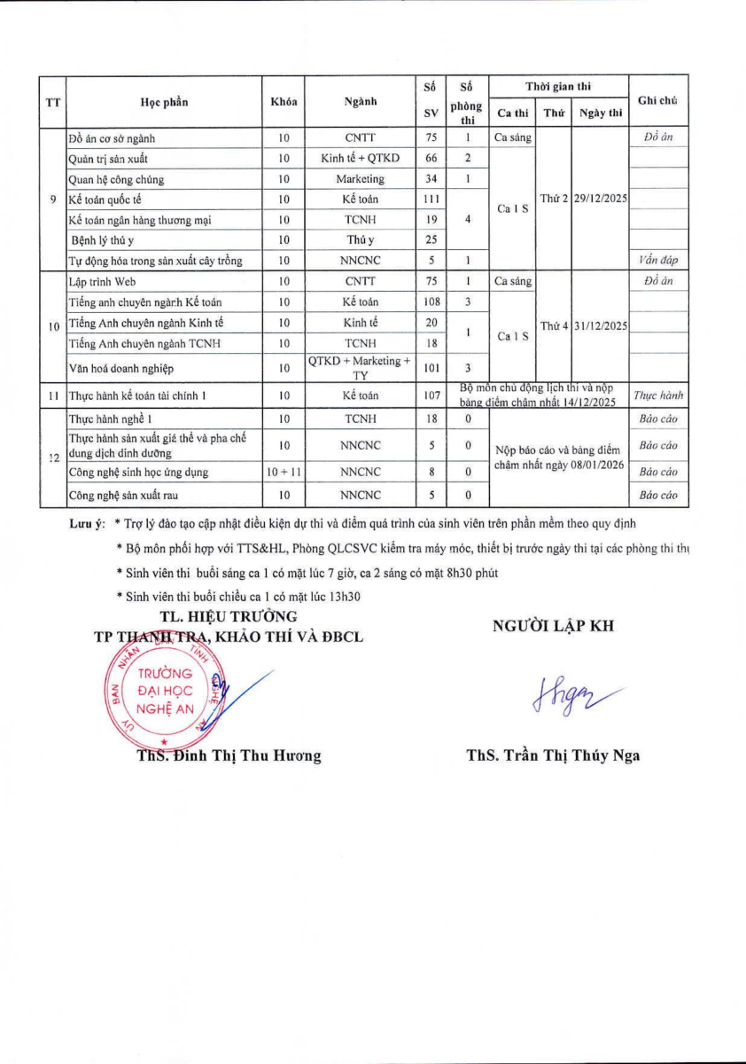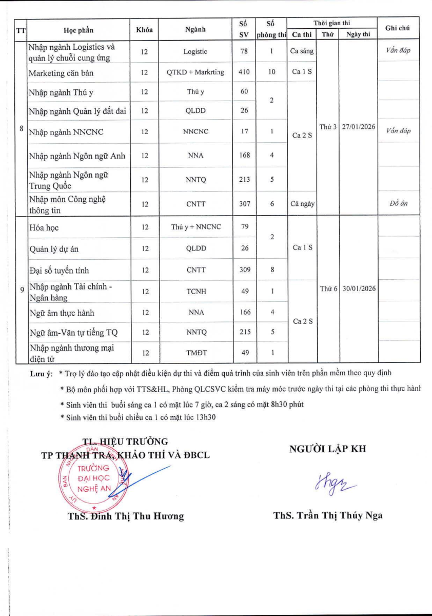 Lịch thi kết thúc học phần Khóa 9 học lại và lần 2, kỳ 2, năm học 2024-2025