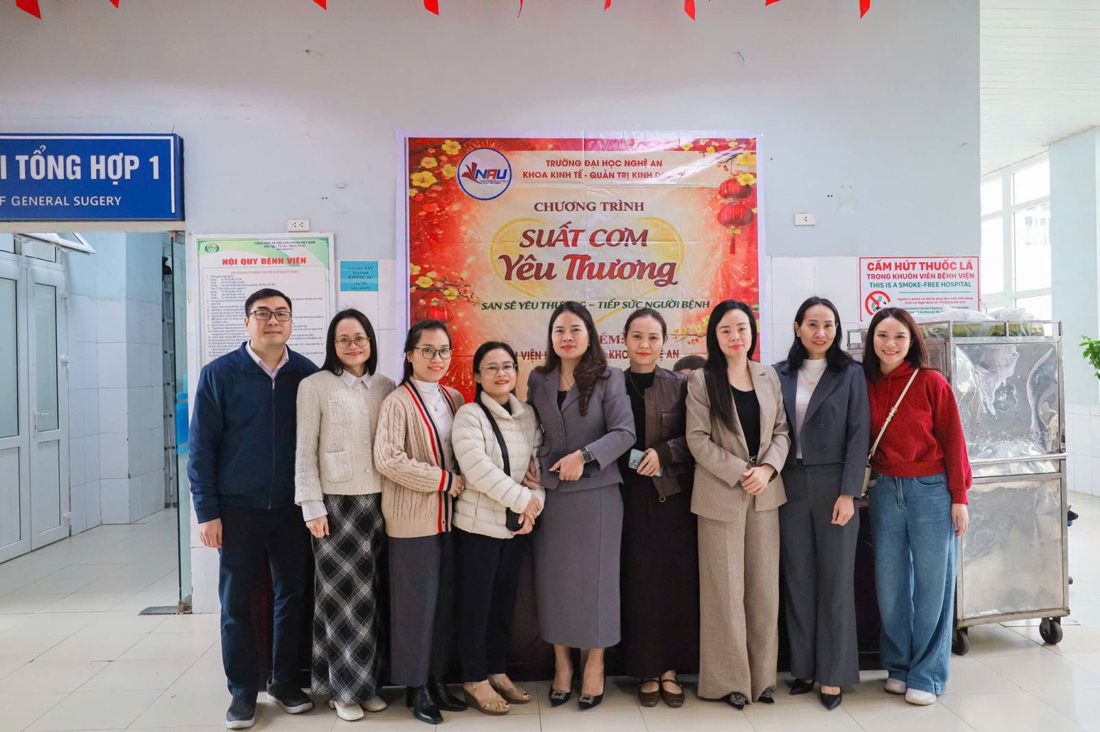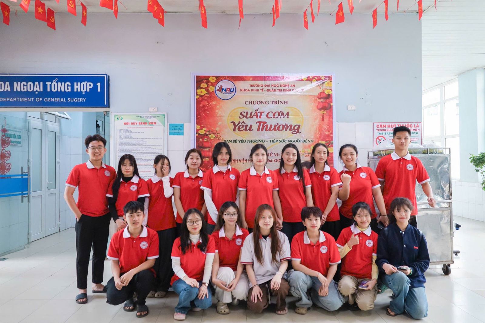 Sáng ngày 02/02/2026, Khoa Kinh tế – Quản trị kinh doanh, Trường Đại học Nghệ An đã tổ chức chương trình thiện nguyện “Suất cơm yêu thương” tại Bệnh viện Hữu nghị Đa khoa Nghệ An, nhằm sẻ chia khó khăn và động viên tinh thần các bệnh nhân đang điều trị tại bệnh viện.