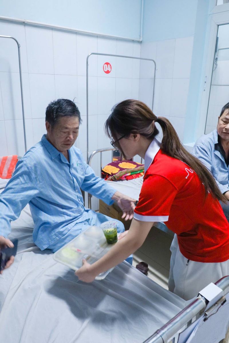 Với tinh thần nhân ái và trách nhiệm cộng đồng, chương trình đã trao tặng những suất cơm ấm áp, góp phần hỗ trợ thiết thực về vật chất, đồng thời mang đến sự quan tâm, sẻ chia và động viên tinh thần cho người bệnh. Mỗi suất cơm được trao đi không chỉ là một bữa ăn, mà còn chứa đựng tình cảm chân thành, sự đồng cảm sâu sắc của tập thể cán bộ, giảng viên và sinh viên Khoa Kinh tế – Quản trị kinh doanh.