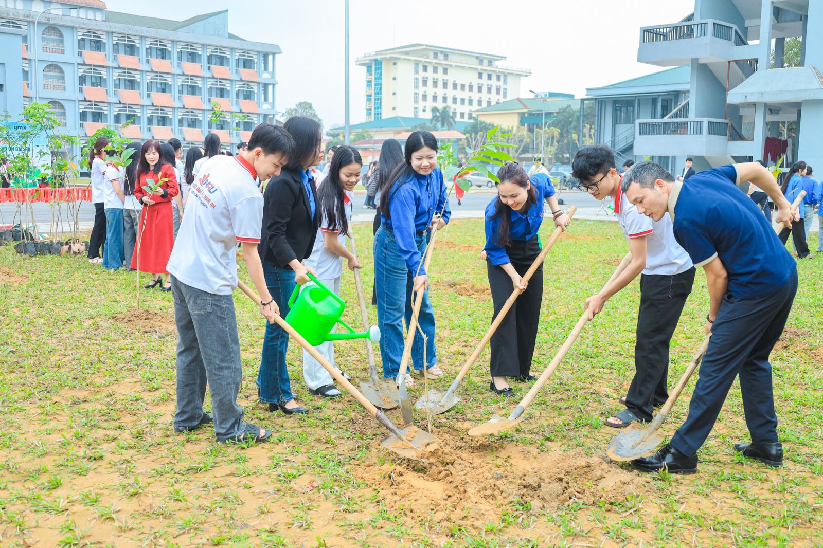 Ngay sau phần phát động, lãnh đạo Nhà trường, đại diện đơn vị tài trợ và các đơn vị tham dự đã cùng thực hiện nghi thức trồng cây trong không khí trang trọng, phấn khởi. Từng mầm xanh được đặt xuống đất không chỉ là sự khởi đầu của một chu kỳ sinh trưởng mới, mà còn là biểu tượng của niềm tin, của khát vọng dựng xây NAU trở thành đại học xanh – hiện đại – trách nhiệm với xã hội.