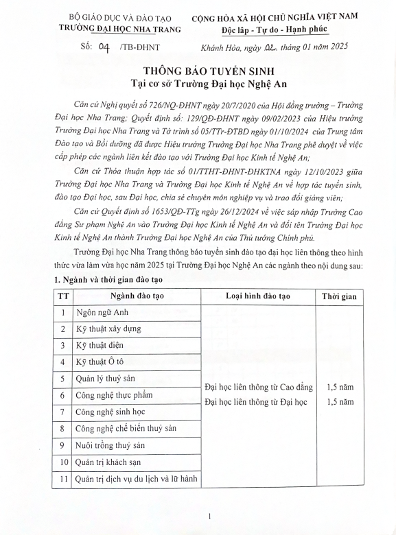 Trường Đại học Nghệ An liên kết Đại học Nha Trang thông báo tuyển sinh hình thức VLVH năm 2025 14/08/2025 03:29 457 lượt xem