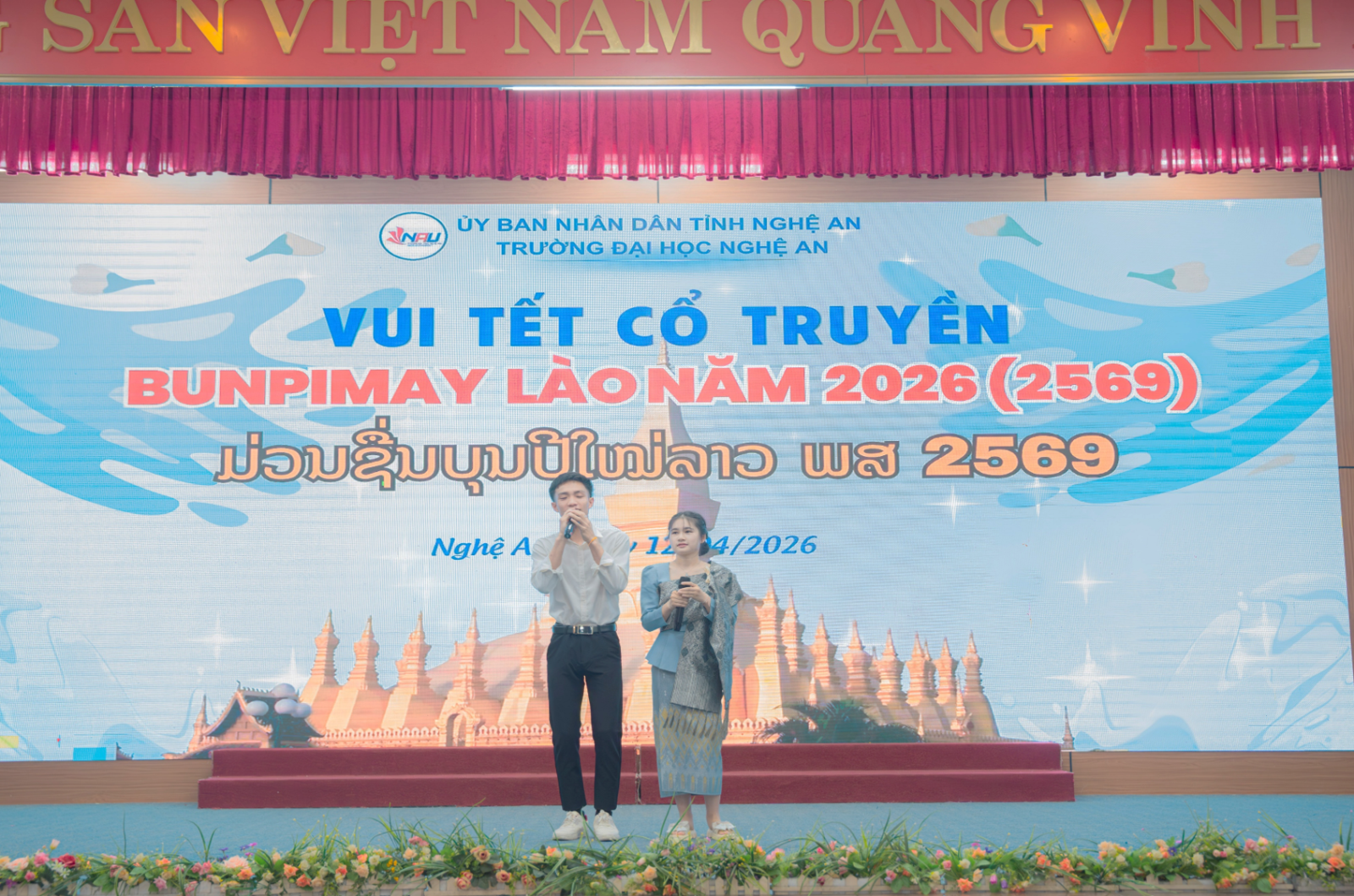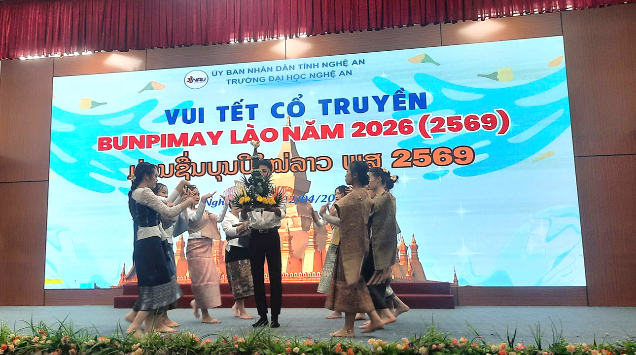 Nhân dịp Tết cổ truyền Bunpimay (Lào) năm 2026, thay mặt Ban lãnh đạo Khoa, các giảng viên và toàn thể sinh viên Khoa Công nghệ thông tin – Đại học Nghệ An (ĐHNA), chúng tôi xin gửi tới các bạn du học sinh, sinh viên Lào đang học tập tại Khoa lời chúc mừng nồng nhiệt và chân thành nhất.