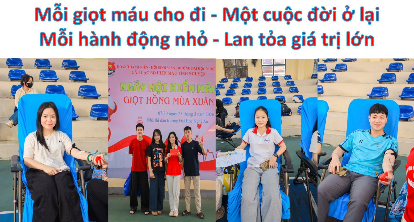 Sáng ngày 25/3/2026, sinh viên và giảng viên Khoa Công nghệ Thông tin – Trường Đại học Nghệ An (NAU) đã tích cực tham gia chương trình hiến máu tình nguyện “Giọt hồng mùa Xuân 2026” do Đoàn Thanh niên Nhà trường tổ chức. Đây là một trong những hoạt động tiêu biểu trong Tháng Thanh niên, hướng tới kỷ niệm 95 năm ngày thành lập Đoàn TNCS Hồ Chí Minh (26/3/1931 – 26/3/2026).