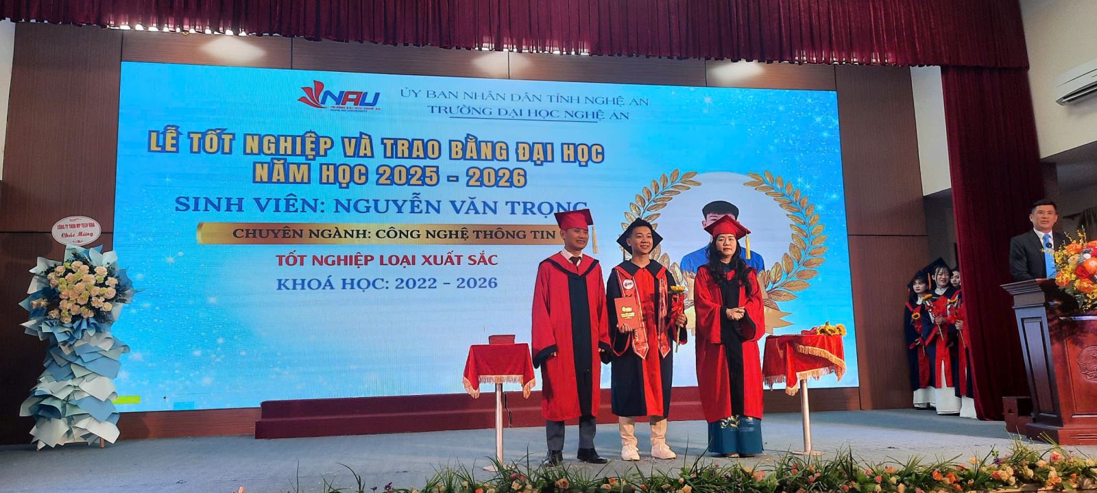 Chiều ngày 29/03/2026, trong không khí trang nghiêm tại Sân Hội trường A1, Khoa Công nghệ thông tin – Trường Đại học Nghệ An đã long trọng tổ chức Lễ tốt nghiệp và trao bằng cử nhân hệ chính quy Đợt 2, năm học 2025 – 2026. Đây là sự kiện đặc biệt đánh dấu cột mốc quan trọng: Những kỹ sư/cử nhân CNTT khóa đầu tiên (K9) chính thức rời ghế nhà trường để chinh phục thị trường lao động số.