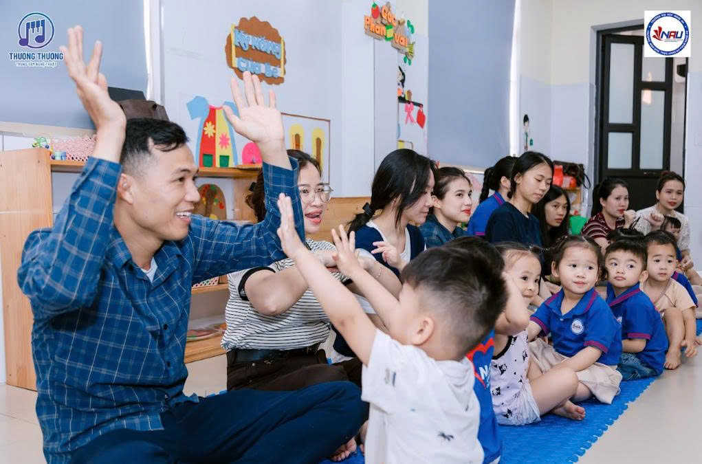 Trường Mầm non Thực hành Sư phạm – Trường Đại học Nghệ An đã tổ chức buổi tổng kết khóa học Cảm thụ Âm nhạc với nhiều cung bậc cảm xúc đáng nhớ. Đây không chỉ là dịp để các con thể hiện những gì đã học, mà còn là cơ hội để bố mẹ cùng hòa mình vào thế giới âm nhạc đầy màu sắc của trẻ thơ.