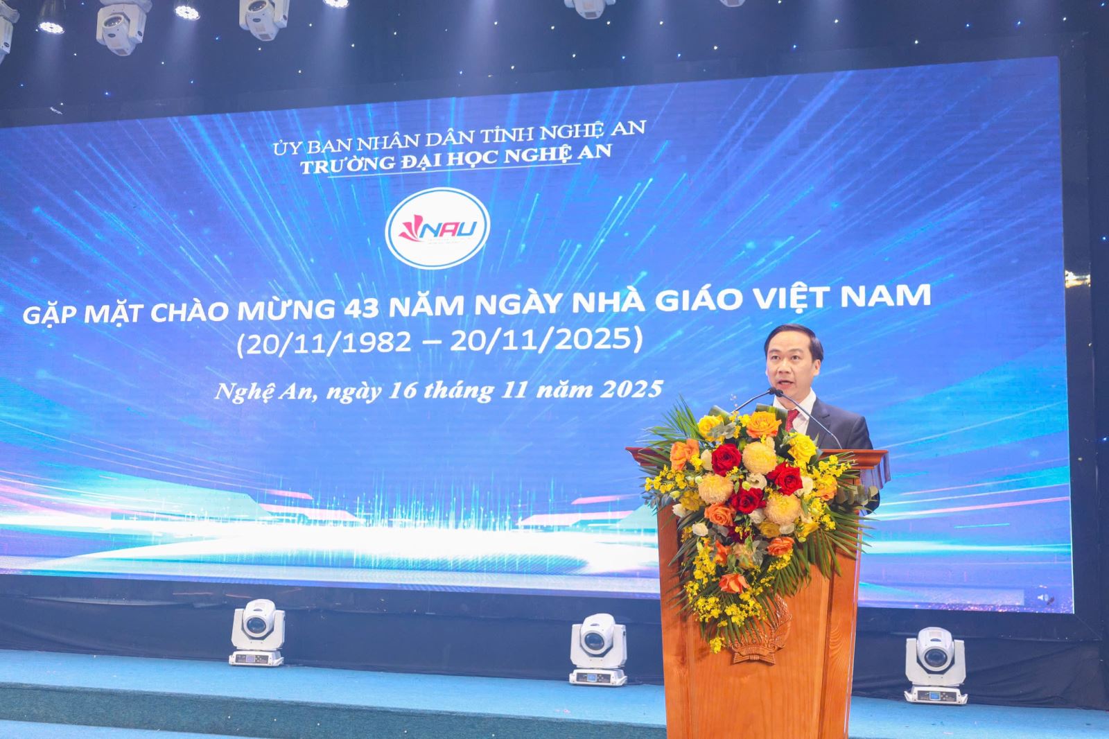 Trong không khí tháng 11 tri ân, Trường Đại học Nghệ An đã trang trọng tổ chức buổi Gặp mặt chào mừng 43 năm Ngày Nhà giáo Việt Nam 20/11 – một dịp để thầy và trò cùng nhìn lại hành trình đầy tự hào của nghề giáo và bày tỏ lòng biết ơn sâu sắc tới những người đã miệt mài cống hiến cho sự nghiệp “trồng người”.