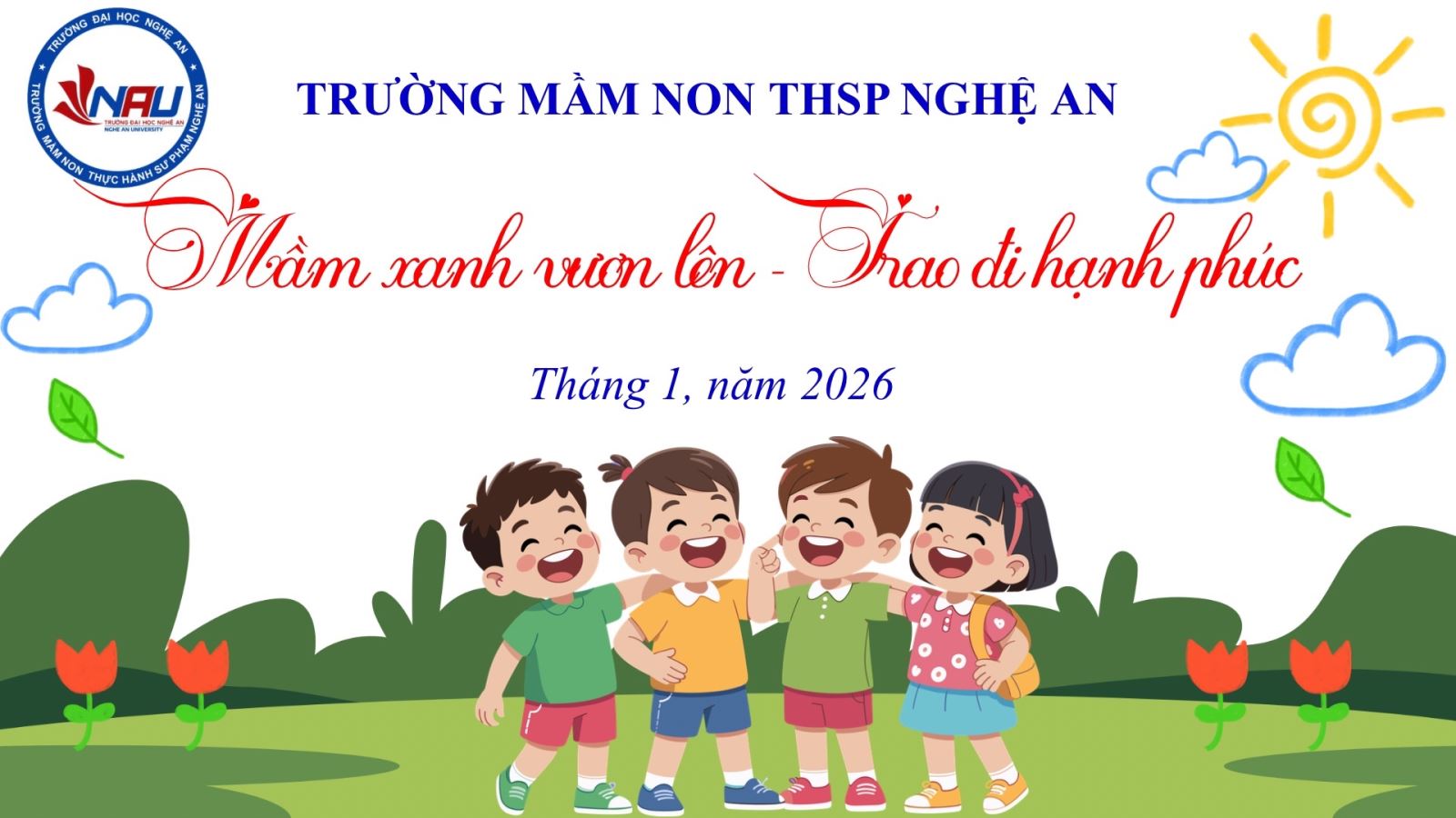 Giáo dục mầm non không chỉ là hành trình nuôi dưỡng trí tuệ, mà còn là quá trình gieo trồng những hạt mầm yêu thương đầu đời trong tâm hồn trẻ thơ. Với mong muốn giúp trẻ được sống trong môi trường giàu cảm xúc tích cực, biết yêu thương, sẻ chia, đồng cảm, và nghị lực vươn lên. Trường Mầm non THSP – Trường Đại học Nghệ An đã tổ chức hoạt động “MẦM XANH VƯƠN LÊN, TRAO ĐI HẠNH PHÚC” nhằm giáo dục lòng nhân ái cho trẻ, mở đầu cho chuỗi hoạt động ý nghĩa “Xuân yêu thương” năm nay.
