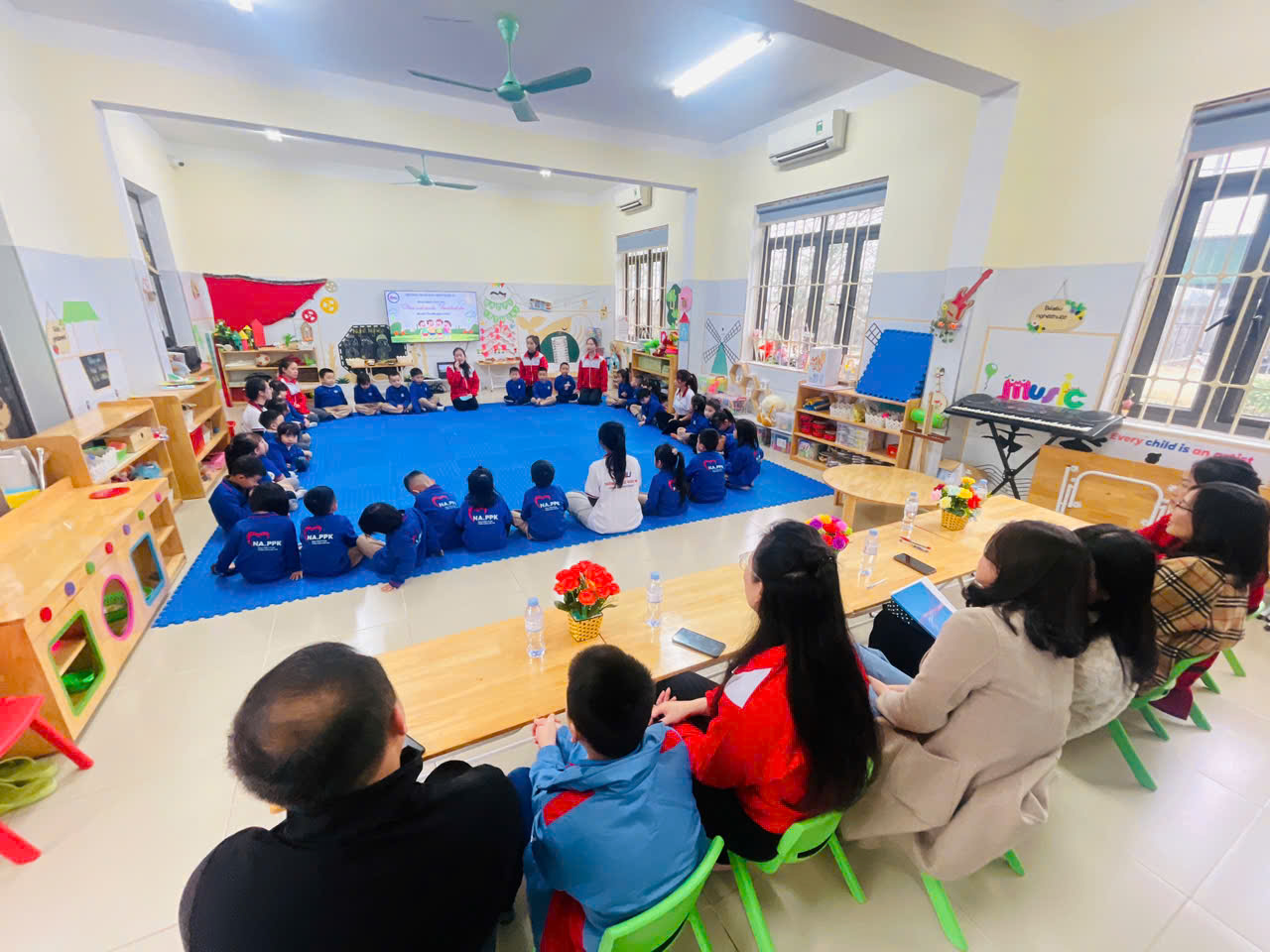 Đặc biệt, buổi chia sẻ có sự đồng hành của ông Thái Doãn Anh – đại diện Hội Cha mẹ học sinh, đại diện các mạnh thường quân, Ban Giám hiệu, các giảng viên Khoa Giáo dục Mầm non, các em sinh viên khoa Mầm non, cùng tập thể giáo viên Trường Mầm non THSP. Sự đồng hành này chính là sự gắn kết bền chặt giữa gia đình – nhà trường – xã hội trong công tác giáo dục trẻ.