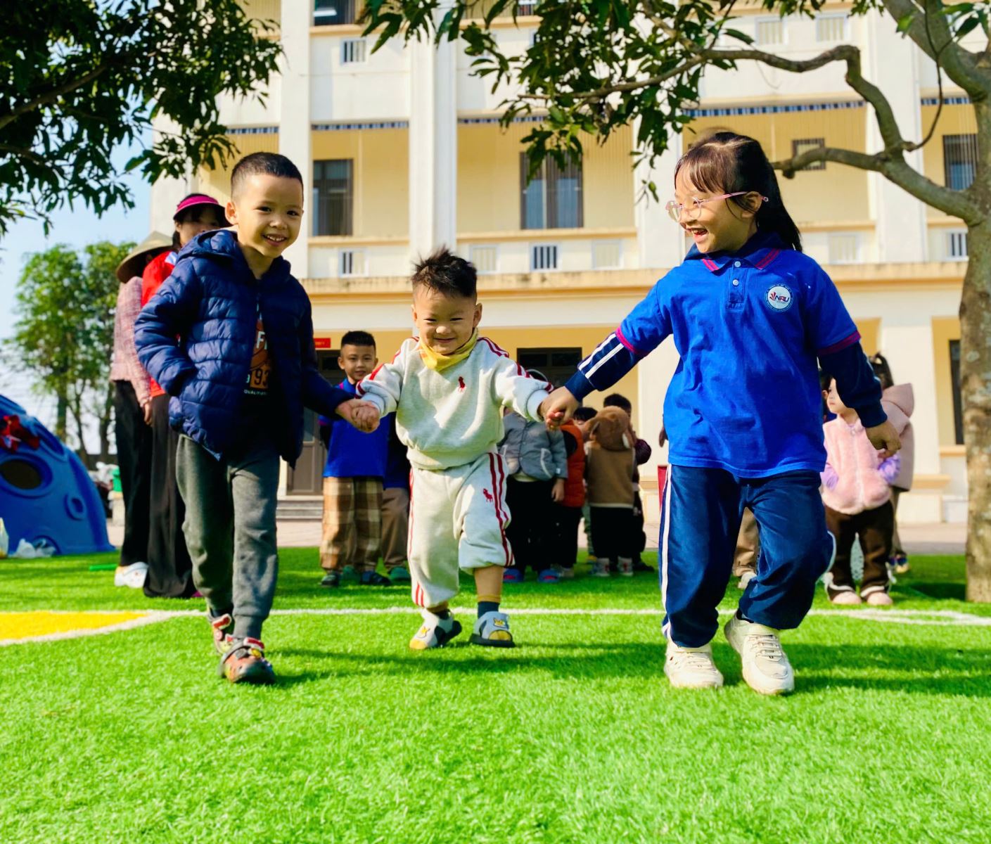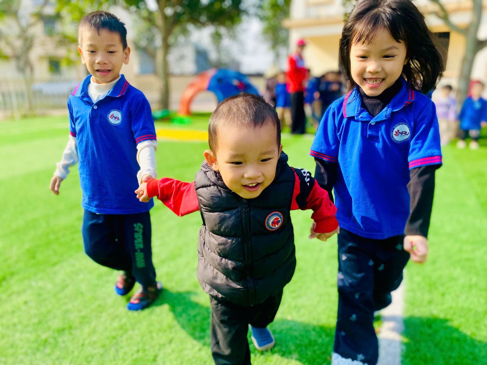 Các hoạt động được thiết kế linh hoạt, khoa học và đảm bảo an toàn, khuyến khích trẻ mạnh dạn tham gia cùng bạn bè khác lớp. Thông qua những trải nghiệm chung ấy, trẻ không chỉ được vận động, khám phá mà còn từng bước phát triển các năng lực xã hội và cảm xúc. Các con học cách hợp tác, chờ đợi, sẻ chia, quan tâm và tôn trọng người khác – những giá trị nền tảng quan trọng cho quá trình hình thành nhân cách trong tương lai.