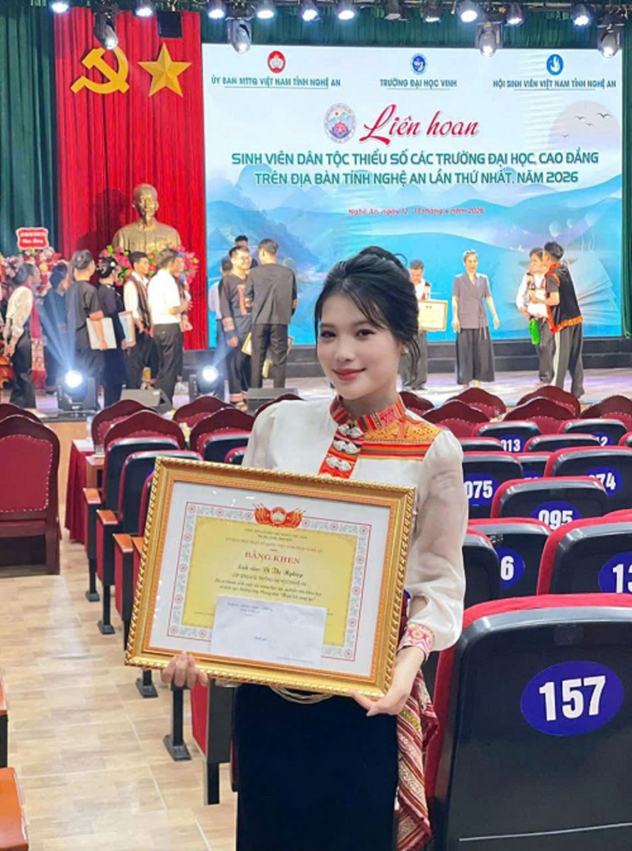 Tại chương trình, sinh viên Trường Đại học Nghệ An tiếp tục khẳng định rõ nét hình ảnh năng động, tự tin và giàu ý chí. Tiêu biểu trong số đó là sinh viên Vi Thị Nghiệp (QTKD K10) và Vi Thị Lan Anh (Thú y K9) – những đại diện xuất sắc cho tinh thần nỗ lực không ngừng nghỉ trong học tập và rèn luyện. Không chỉ đạt kết quả cao trong học tập, các bạn còn tích cực tham gia các hoạt động phong trào, đóng góp thiết thực cho cộng đồng và lan tỏa những giá trị tích cực trong môi trường học đường.