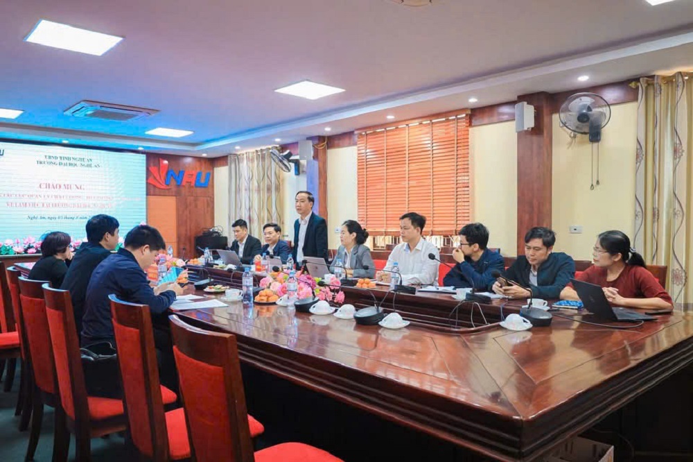 Sáng ngày 05/3/2026, Trường Đại học Nghệ An tổ chức buổi đón tiếp và làm việc với Đoàn kiểm tra của Cục Quản lý chất lượng – Bộ Giáo dục và Đào tạo về việc kiểm tra các điều kiện bảo đảm tổ chức kỳ thi đánh giá năng lực Tiếng Việt theo quy định của Bộ Giáo dục và Đào tạo