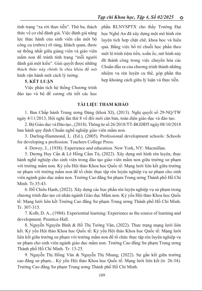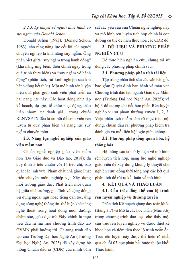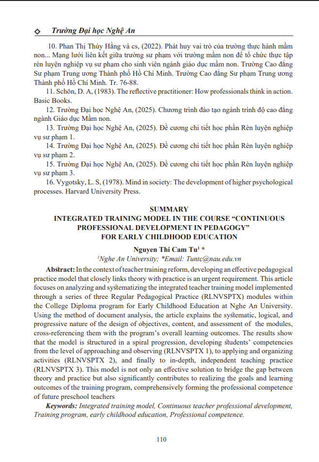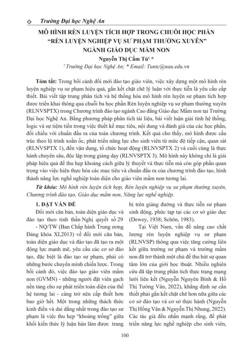 MÔ HÌNH RÈN LUYỆN TÍCH HỢP TRONG CHUỖI HỌC PHẦN “RÈN LUYỆN NGHIỆP VỤ SƯ PHẠM THƯỜNG XUYÊN” NGÀNH GIÁO DỤC MẦM NON 10/02/2026 08:52 100 lượt xem