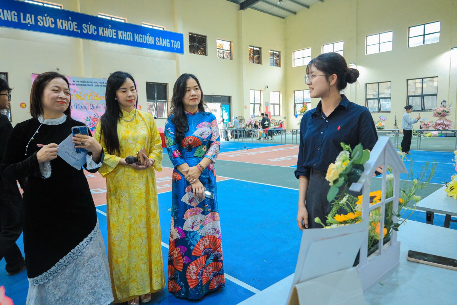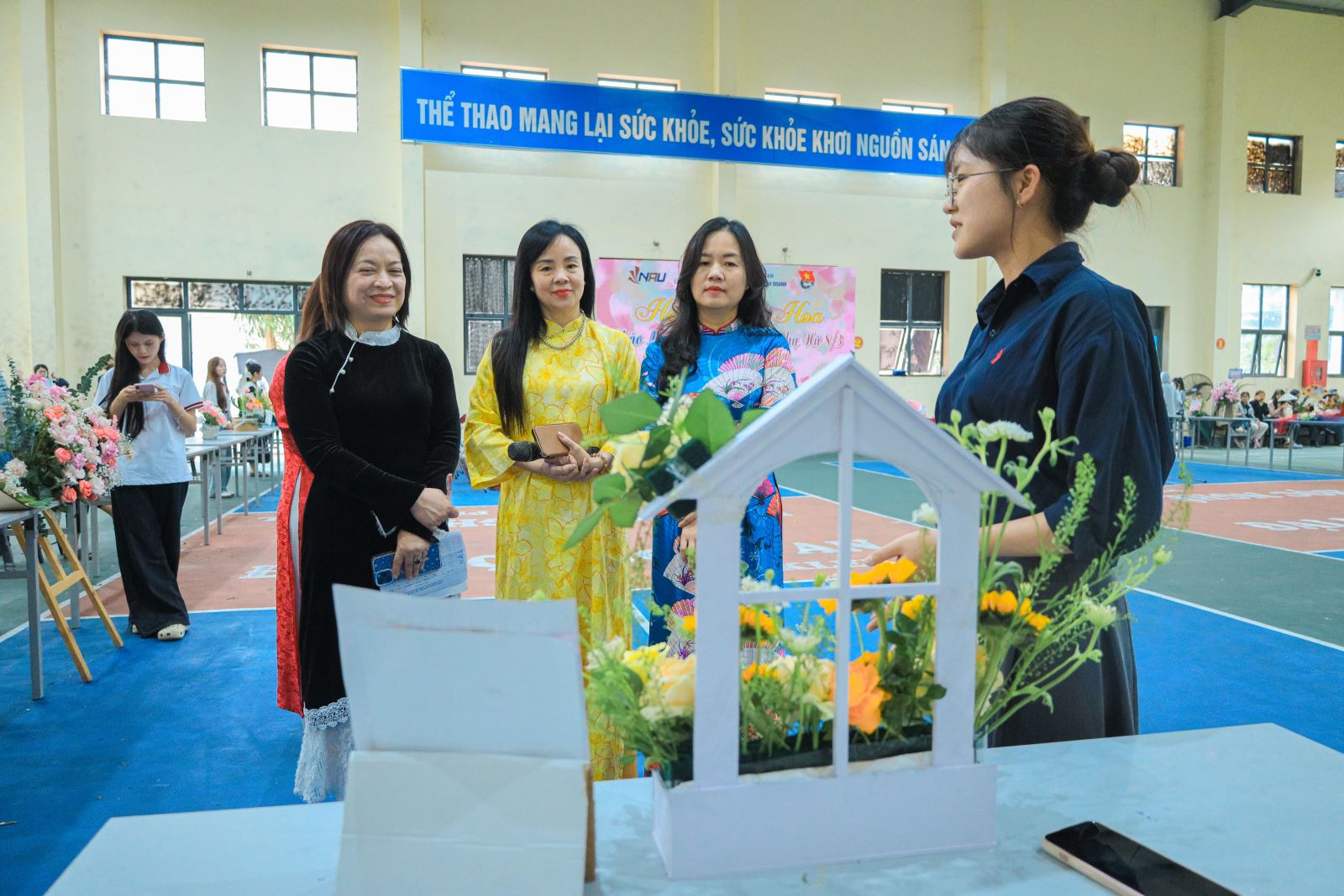 Trong không gian rực rỡ và đầy tính nghệ thuật của Hội thi cắm hoa do Trường Đại học Nghệ An tổ chức, Khoa Mầm non đã tạo nên một dấu ấn đậm nét khi xuất sắc giành Giải Nhì với tác phẩm mang tên: “Khí chất phụ nữ Việt”.