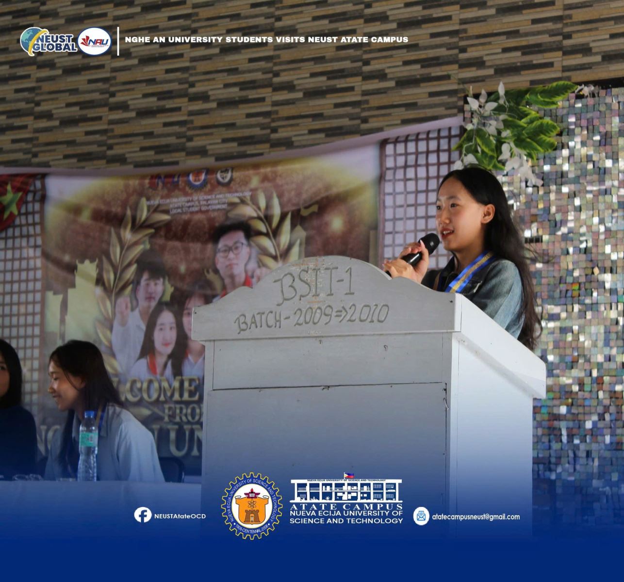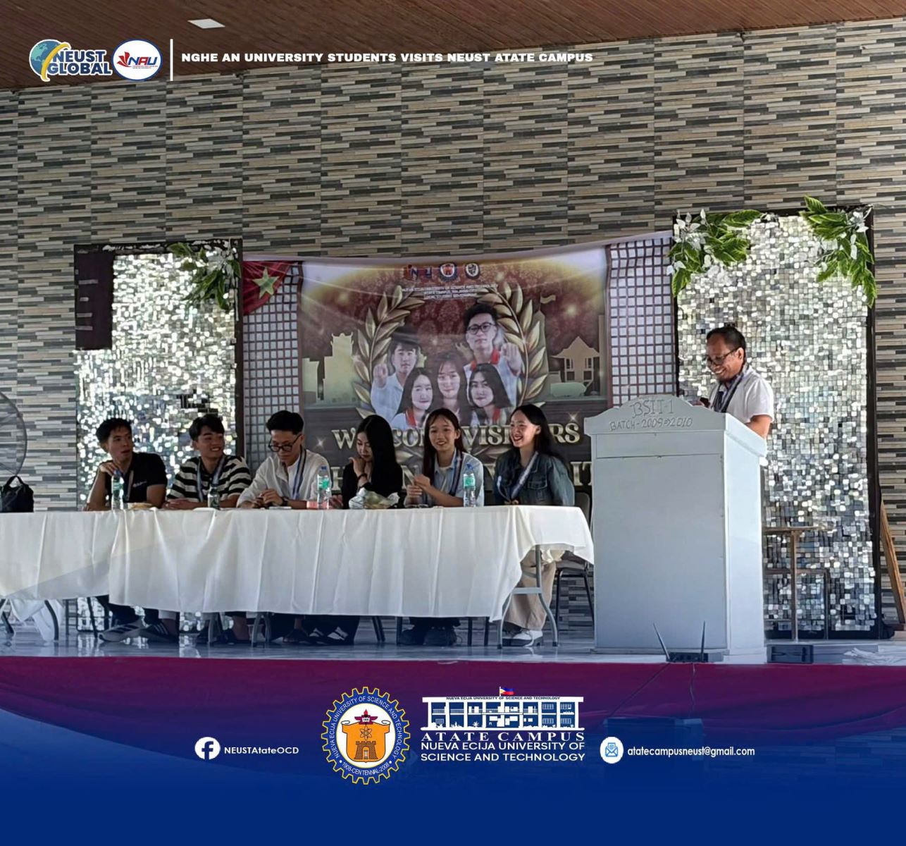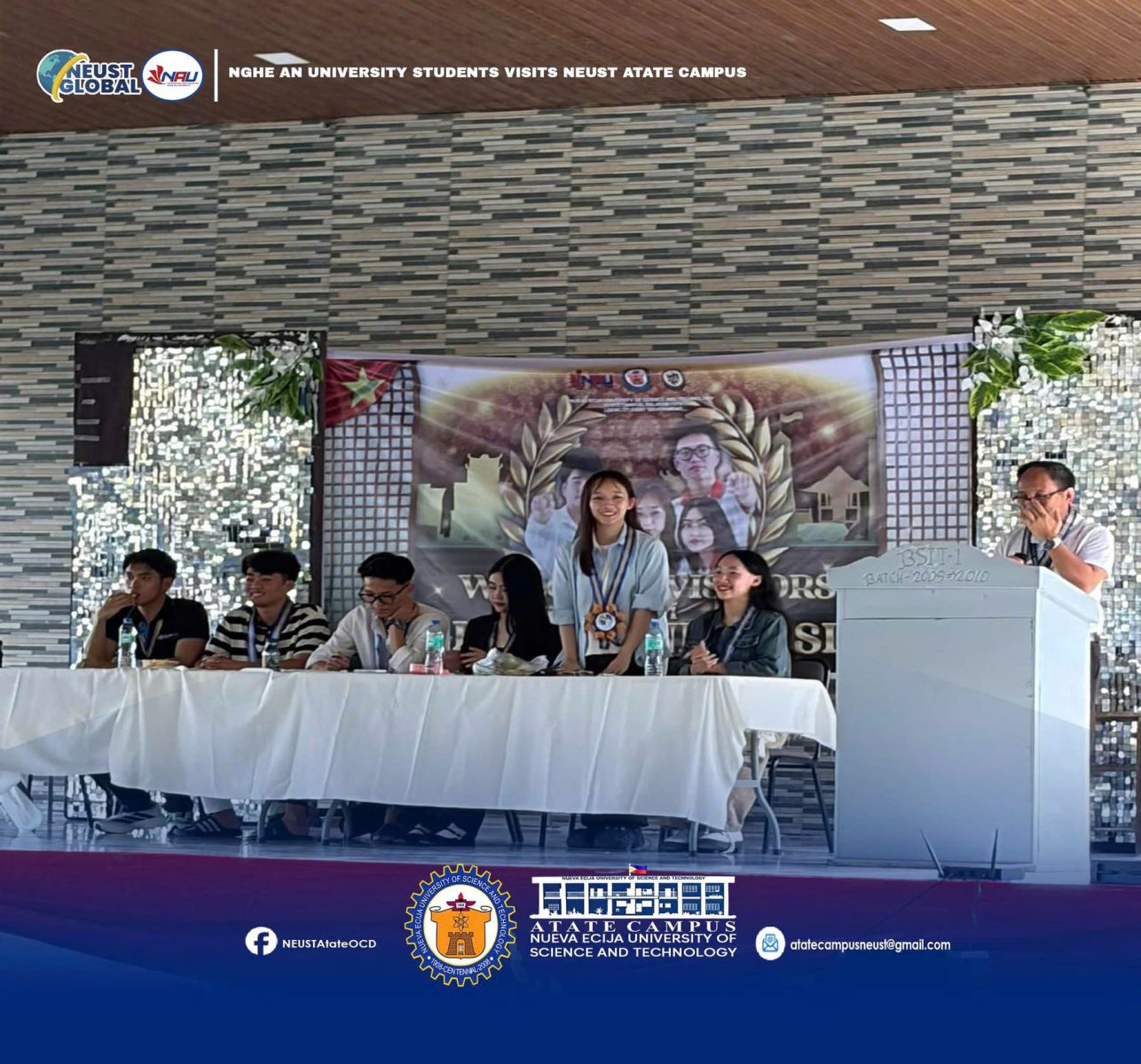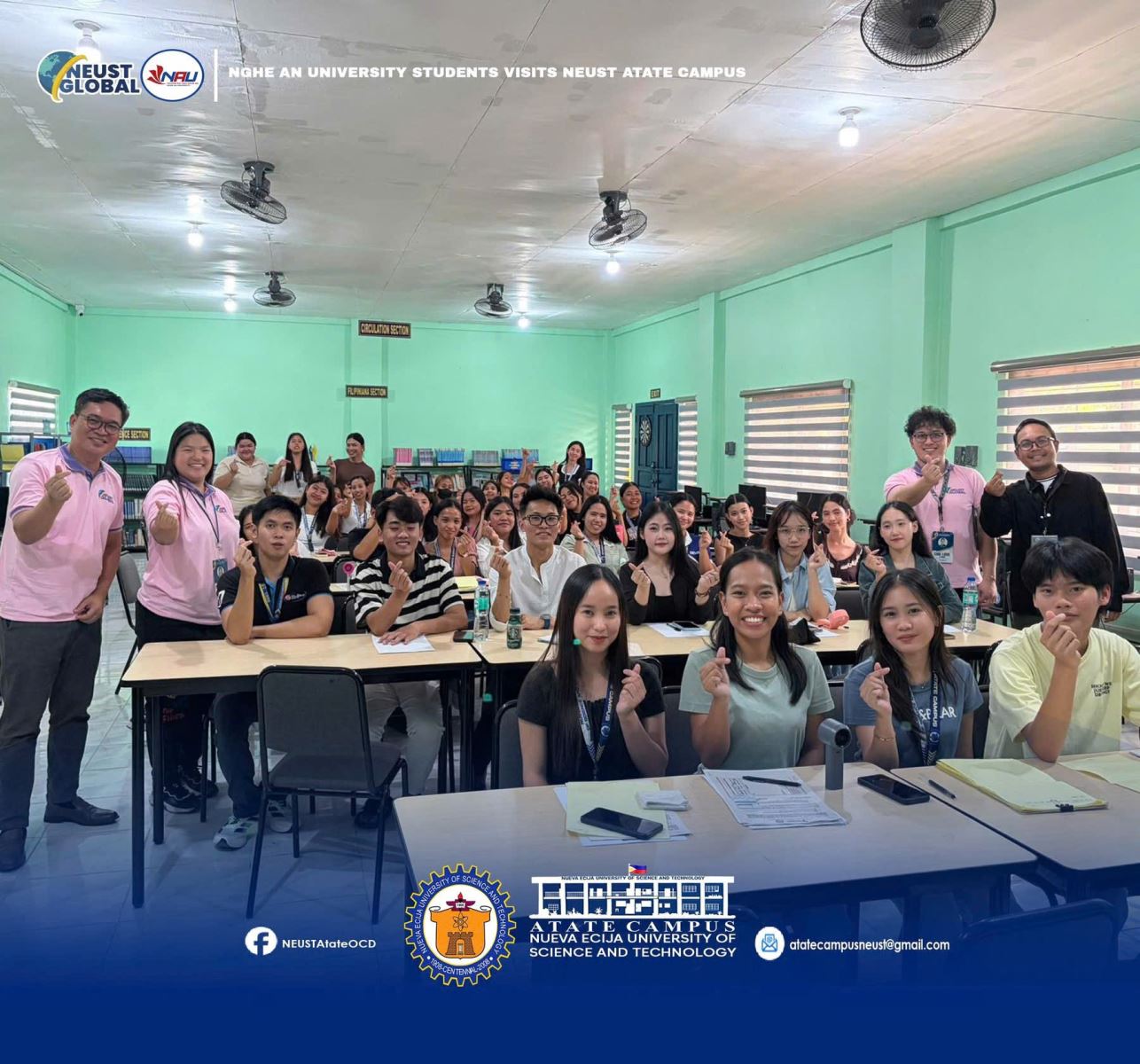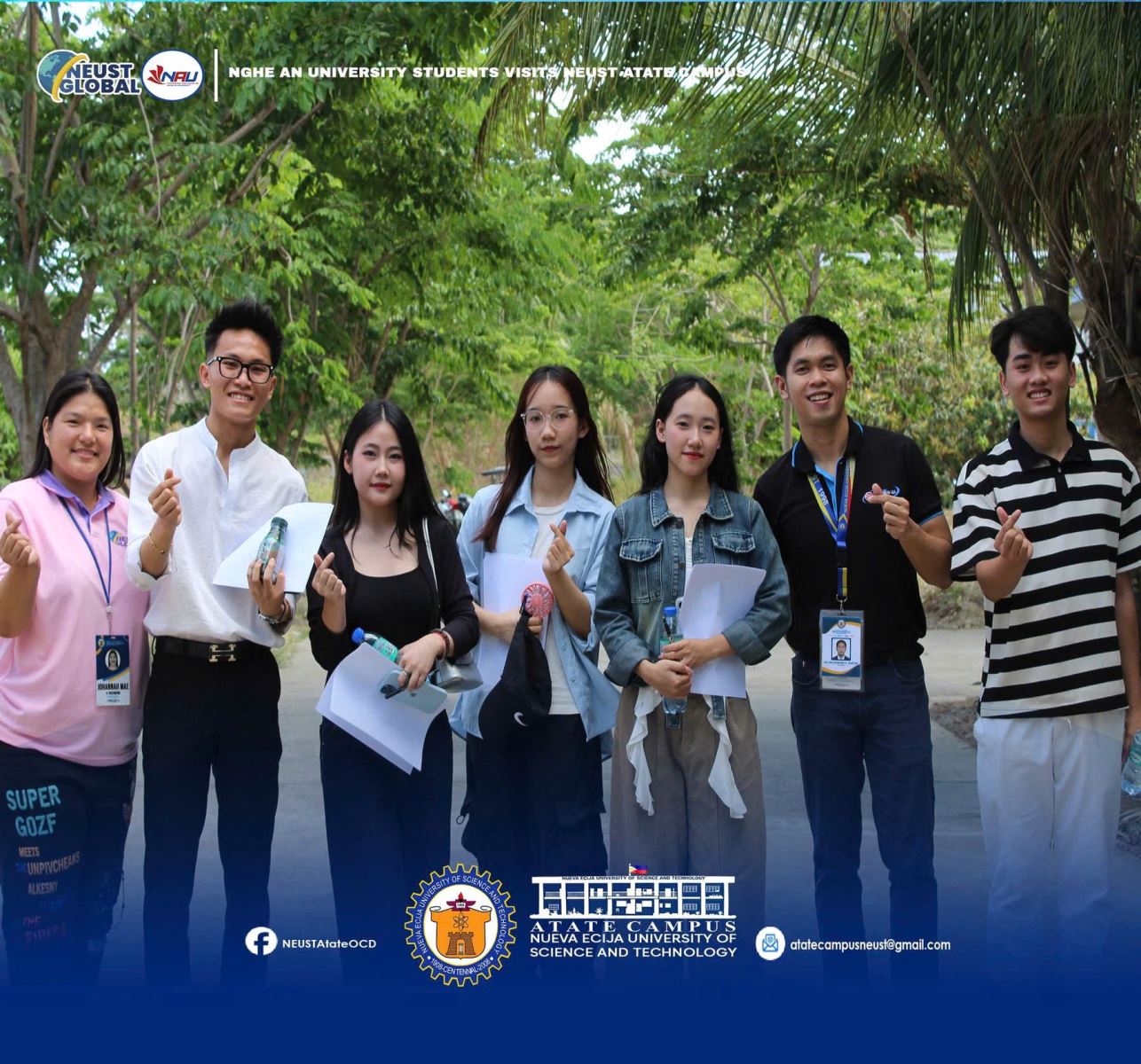Thực hiện chương trình "Giao lưu văn hoá năm 2026" của Nhà trường, ngày 28 và 29 tháng 4 năm 2026, đoàn sinh viên Trường Đại học Nghệ An đã có chuyến thăm và giao lưu học thuật tại Trường Đại học Khoa học và Công nghệ Nueva Ecija (NEUST) - Philippines. Đây là hoạt động nằm trong chương trình hợp tác quốc tế, nhằm tăng cường kết nối, trao đổi kiến thức, nâng cao năng lực ngoại ngữ và trải nghiệm môi trường học tập đa văn hóa cho sinh viên.