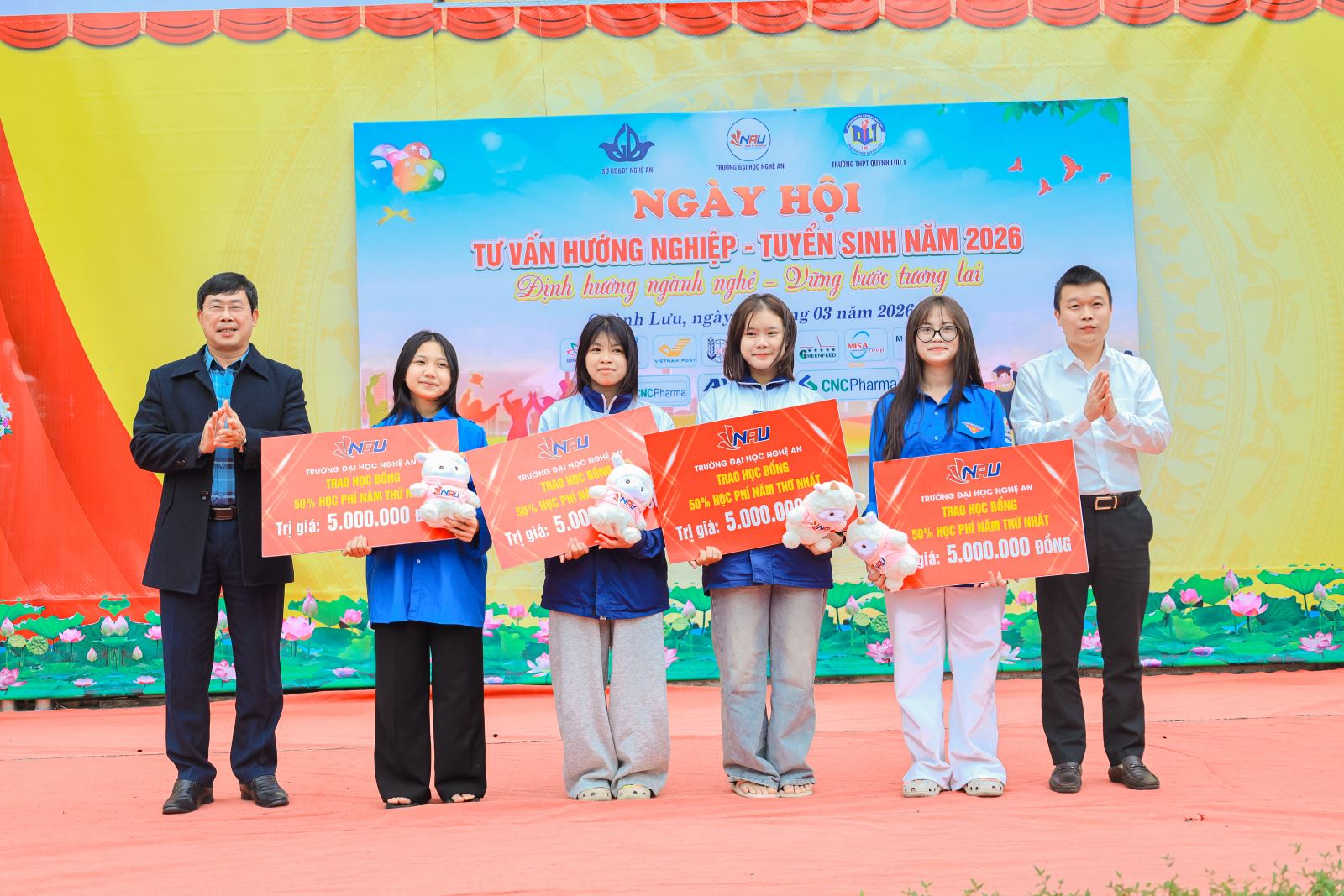 Nhân dịp này, đại diện Trường Đại học Nghệ An và Trường THPT Quỳnh Lưu 1 đã trao biểu trưng học bổng dành cho các học sinh lớp 12 đăng ký tìm hiểu thông tin tuyển sinh của NAU, góp phần khích lệ tinh thần học tập và định hướng tương lai cho các em.