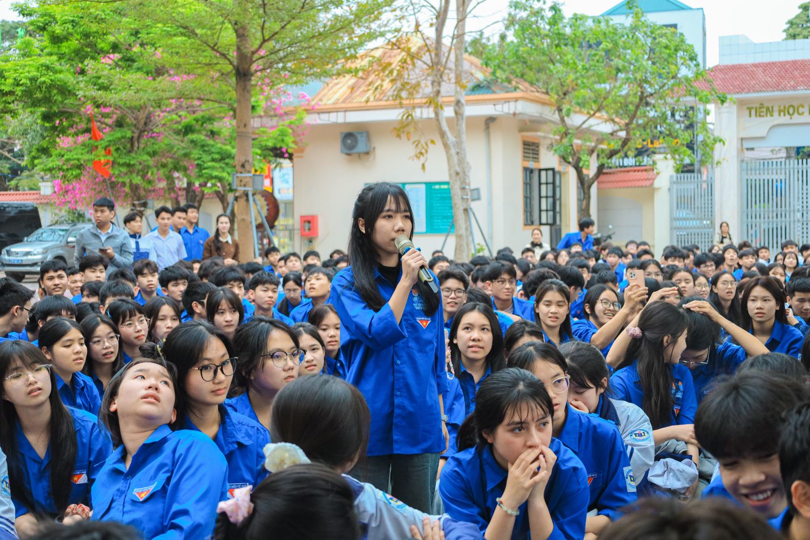 Ngay từ khi chương trình bắt đầu, nhiều học sinh đã chủ động đặt câu hỏi liên quan đến lựa chọn ngành học, cơ hội việc làm sau khi tốt nghiệp và xu hướng nghề nghiệp trong thời đại mới. Không khí trao đổi sôi nổi cho thấy sự quan tâm và tinh thần chủ động của học sinh lớp 12 trong việc tìm hiểu con đường học tập sau khi rời ghế nhà trường.