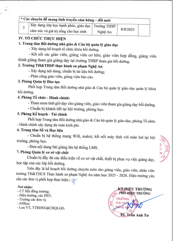 Kê hoạch bồi dưỡng chuyên môn cho Giảng viên, giáo viên tại trường TH&THCS THSP Nghệ An năm học 2025-2026 20/08/2025 09:26 458 lượt xem