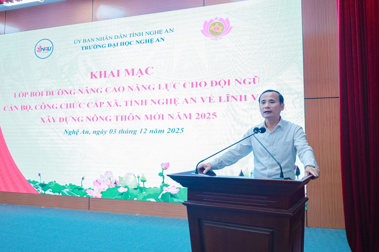 Trong bối cảnh chương trình xây dựng nông thôn mới bước vào giai đoạn phát triển hiện đại và bền vững 2026–2030, việc nâng cao năng lực cho đội ngũ cán bộ, công chức cấp xã trở thành yêu cầu cấp thiết. Nhằm đáp ứng nhu cầu đó, từ ngày 01/12 đến 04/12/2025, Sở Nội vụ tỉnh Nghệ An phối hợp với Trường Đại học Nghệ An tổ chức khóa “Bồi dưỡng nâng cao năng lực cán bộ, công chức cấp xã về xây dựng nông thôn mới năm 2025”.