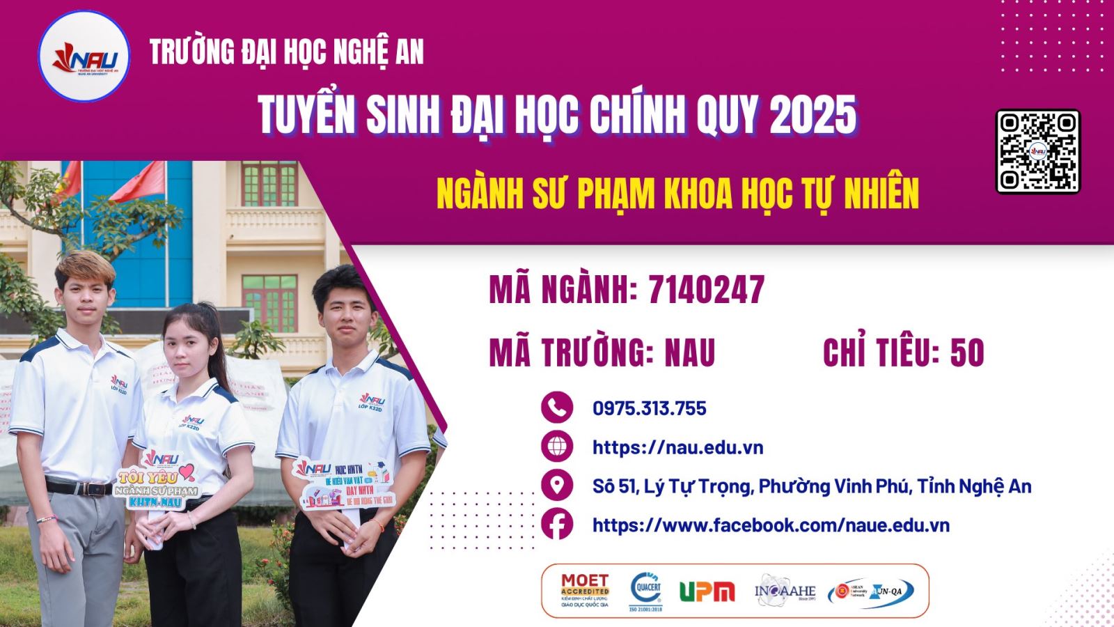 📍Địa chỉ: Trường Đại học Nghệ An – 51 Lý Tự Trọng, Phường Vinh Phú, Nghệ An