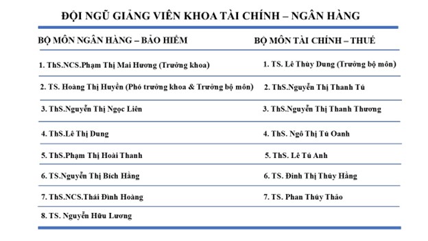 Giảng viên Tổ bộ môn Ngân hàng – Bảo hiểm