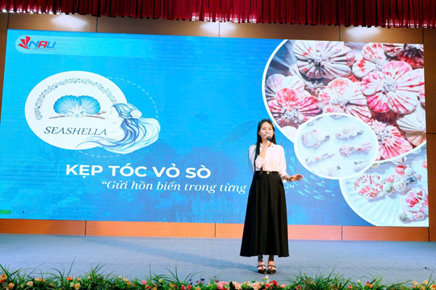 Dự án Seashella – kẹp tóc vỏ sò thủ công, đạt giải nhì, được thực hiện bởi nhóm tác giả Nguyễn Thị Thảo Hiền, Bùi Thị Oanh, Mạc Đăng Hải, Lê Văn Hiếu, Lê Anh Tuấn, gây ấn tượng mạnh mẽ bởi ý tưởng khởi nguồn đầy nhân văn. Seashella xuất phát từ mong muốn xây dựng một làng nghề thủ công ven biển, tận dụng nguồn vỏ sò tự nhiên tại vùng biển Cửa Lò, qua đó tạo công ăn việc làm ổn định cho người dân địa phương.Từ những vỏ sò tưởng chừng như bị bỏ đi sau mỗi mùa biển, Seashella đã thổi vào đó hơi thở của sáng tạo, biến chúng thành những chiếc kẹp tóc thủ công tinh tế, mang đậm dấu ấn biển cả. Không dừng lại ở giá trị kinh tế, dự án còn hướng tới những giá trị xã hội bền vững: các em nhỏ sau giờ học có thể tranh thủ cùng bố mẹ tham gia vào những công đoạn thủ công đơn giản, vừa phụ giúp gia đình, vừa sớm hình thành ý thức lao động, trân trọng giá trị của sản phẩm do chính tay mình tạo ra. Seashella vì thế không chỉ là một dự án khởi nghiệp, mà còn là câu chuyện đẹp về gắn kết gia đình, gìn giữ bản sắc làng nghề và nuôi dưỡng tình yêu quê hương vùng biển.