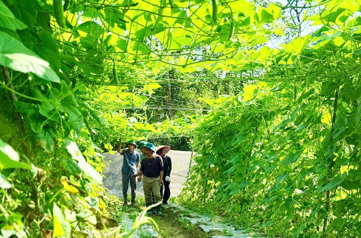 Ngoài hộ ông Thủy, tại thôn Quý Linh có thêm 5 hộ dân khác đang tham gia sản xuất rau, củ, quả tập trung với tổng diện tích khoảng 4,5ha. Các giống cây chủ lực gồm bầu sao, bí đỏ, đậu cô ve, mướp đắng, dưa chuột và nhiều loại rau theo mùa.