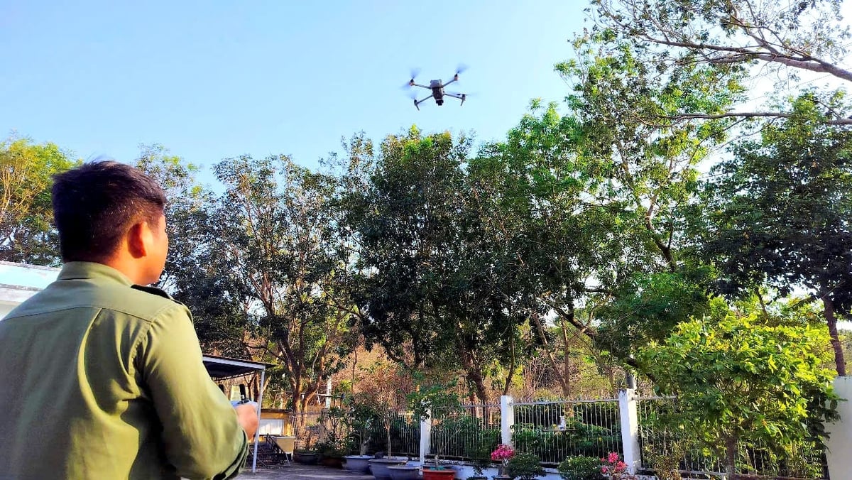 Chủ rừng ở tỉnh Lâm Đồng dùng flycam quan sát phòng chống cháy rừng.