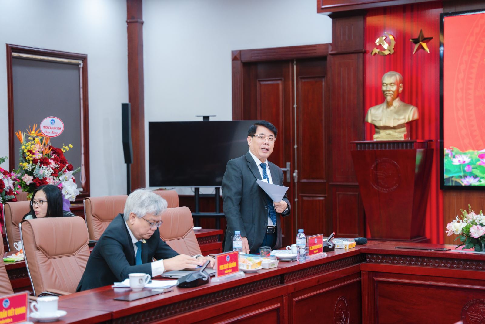 TS. Trương Quang Ngân - Phó Hiệu trưởng Trường Đại học Nghệ An phát biểu chúc mừng NCS Nguyễn Khánh Ly