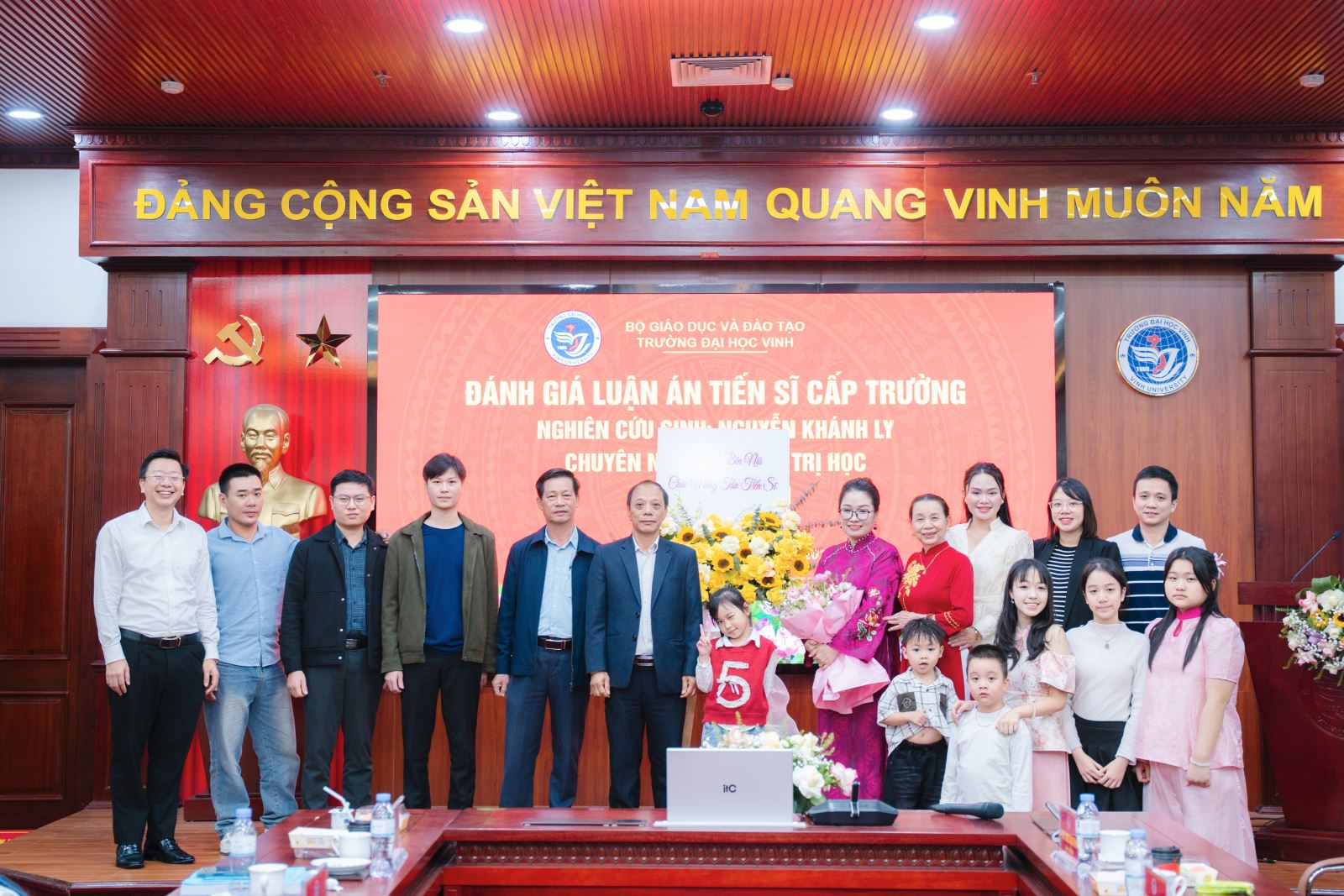 Lãnh đạo và đồng nghiệp Trường Đại học Nghệ An chúc mừng Tân Tiến sĩ Nguyễn Khánh Ly