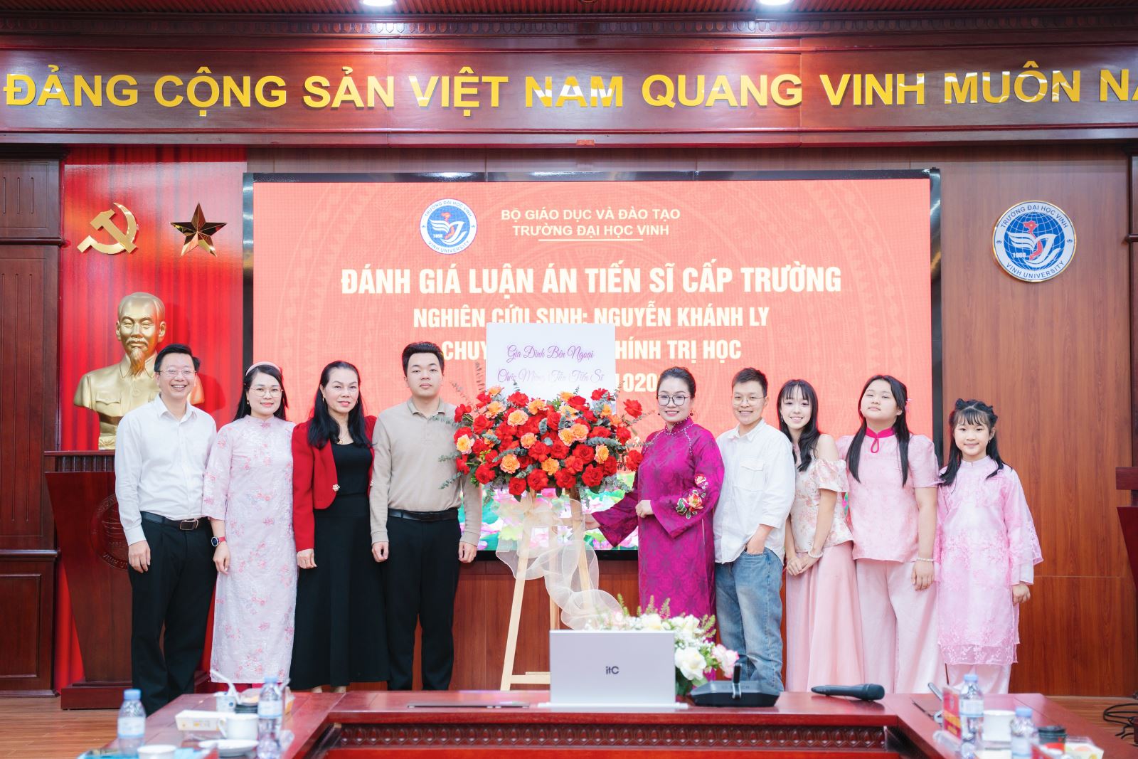 NCS. Nguyễn Khánh Ly cũng bày tỏ lòng biết ơn đến cơ sở đào tạo cũng như Trường Đại học Nghệ An, gia đình, bạn bè đã luôn động viên, giúp đỡ để có thể hoàn thành tốt đề tài luận án. Việc bảo vệ thành công luận án Tiến sĩ không chỉ là niềm tự hào của NCS Nguyễn Khánh Ly mà còn là minh chứng cho chất lượng của đội ngũ giảng viên Trường Đại học Nghệ An.