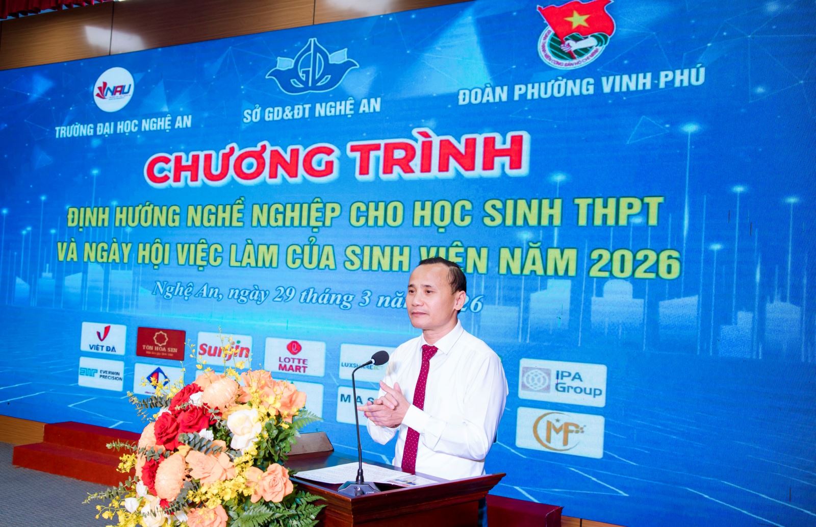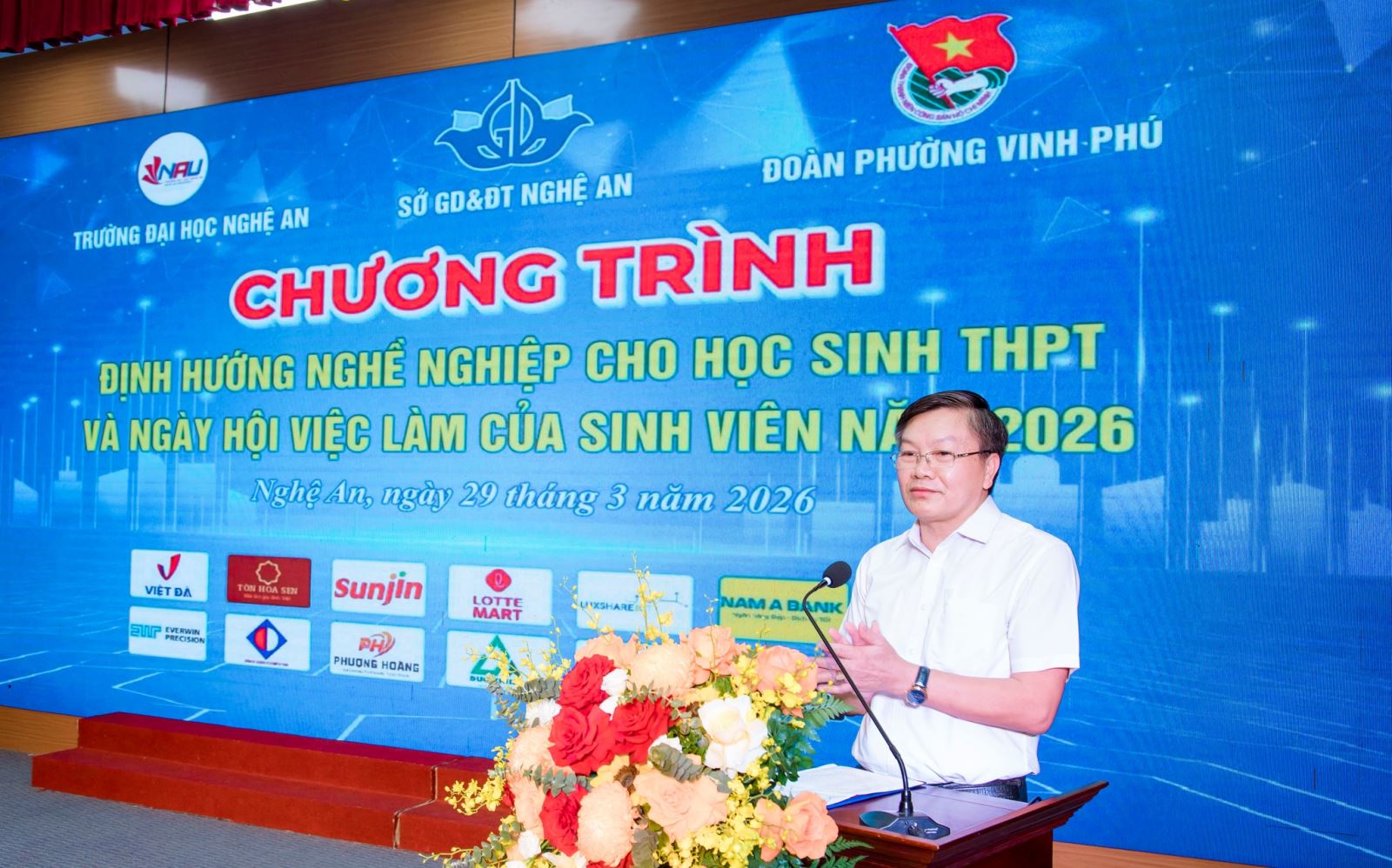 Phát biểu tại chương trình, đại diện Sở Giáo dục và Đào tạo Nghệ An đánh giá cao việc Nhà trường duy trì tổ chức Ngày hội việc làm thường niên, xem đây là hướng đi đúng đắn và cần thiết. Hoạt động không chỉ giúp sinh viên tiếp cận cơ hội nghề nghiệp mà còn góp phần nâng cao chất lượng nguồn nhân lực, đáp ứng yêu cầu phát triển kinh tế – xã hội của địa phương.