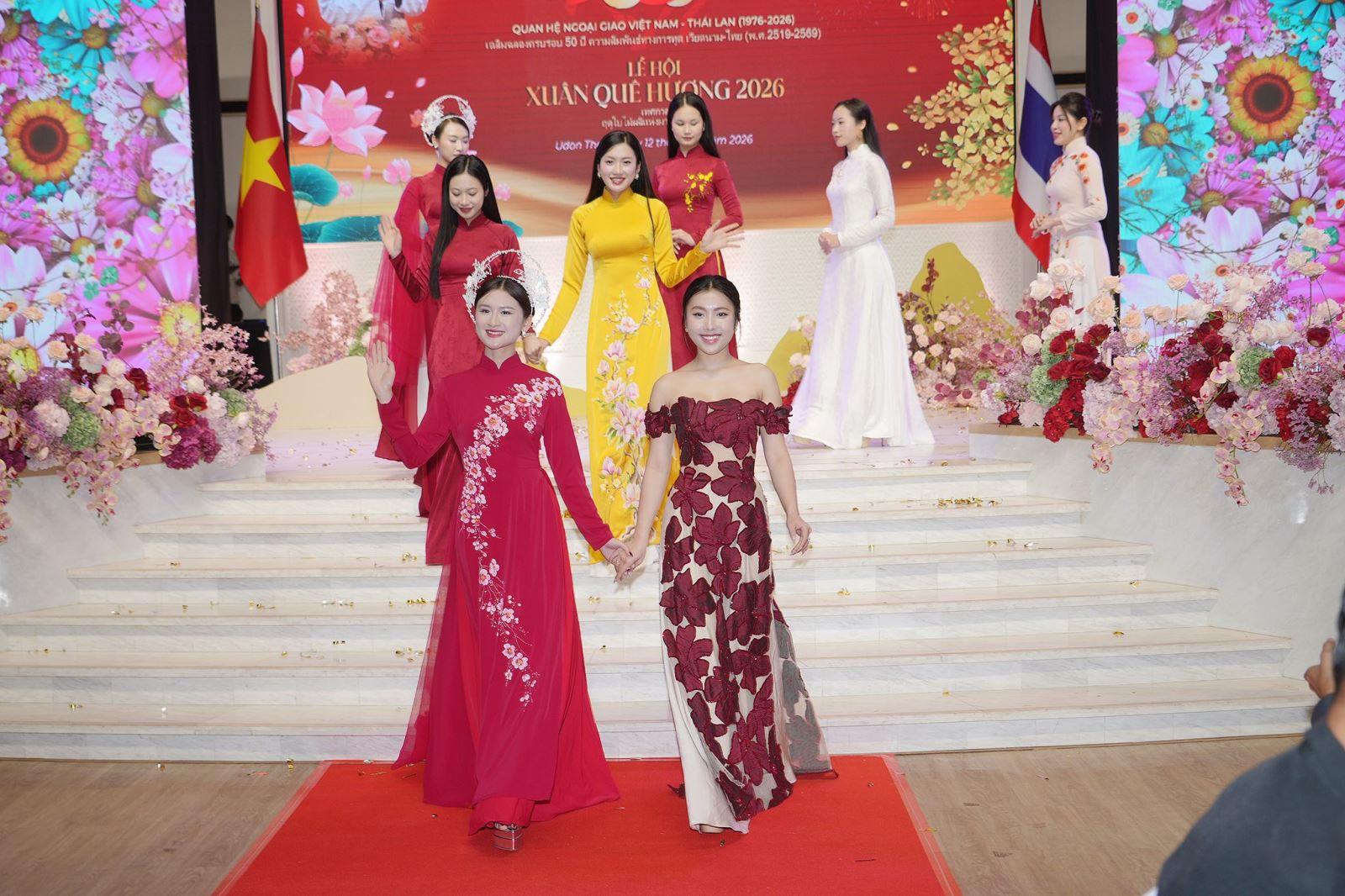 Sự kiện càng thêm ấn tượng với màn trình diễn áo dài “Màu sắc Việt” của cộng đồng người Việt tại Thái Lan cùng sự tham gia của các hoa hậu, người mẫu; xen kẽ là các tiết mục múa truyền thống đặc sắc của sinh viên Udon Thani Rajabhat University, tạo nên bức tranh giao thoa văn hóa Việt – Thái đầy cảm xúc, giàu tính kết nối.